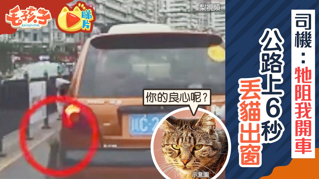 司機指貓咪阻礙到他開車,一時氣憤將貓丟出車外。(梨視頻)