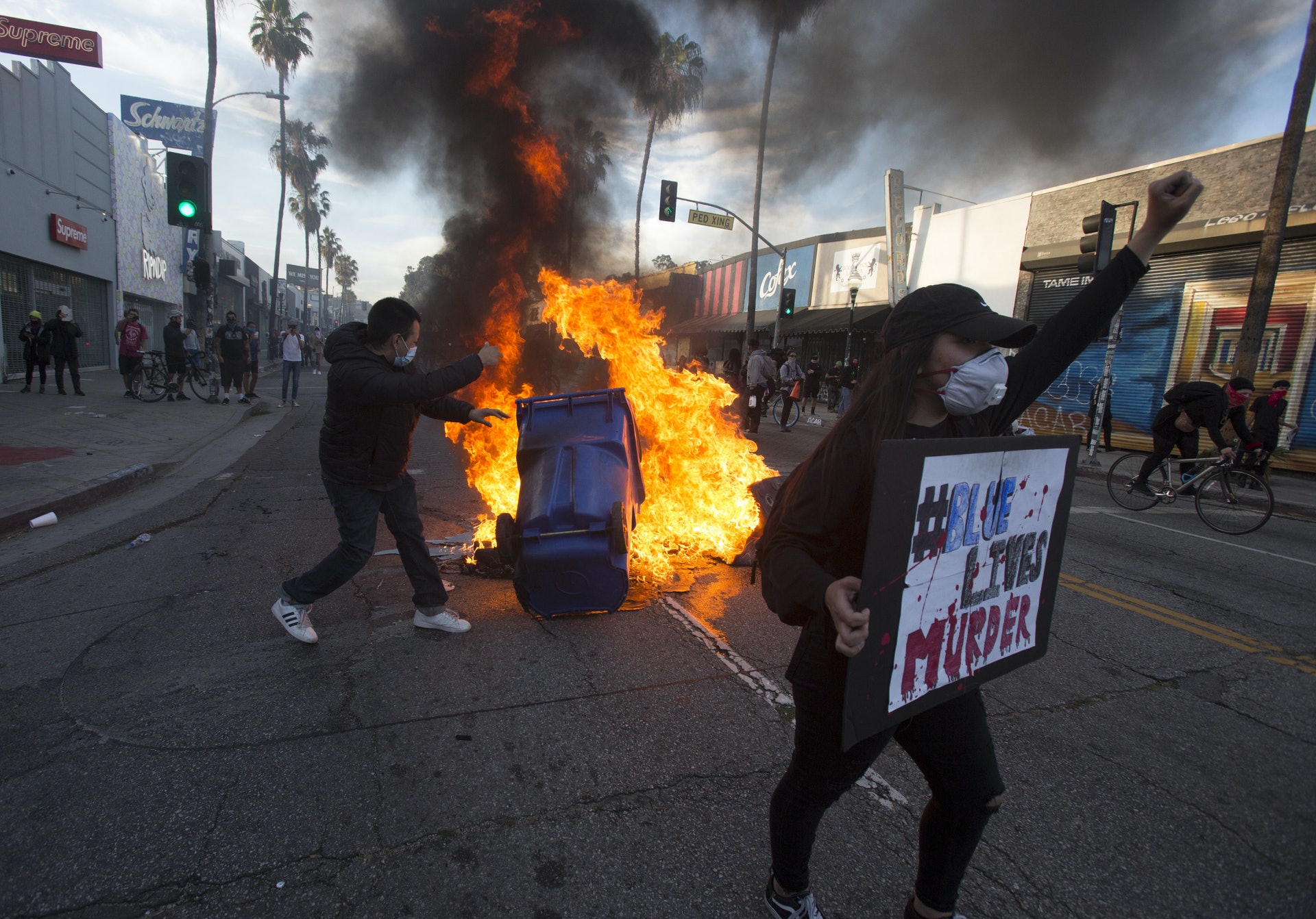 7 y* f* m Z4 P4 V0 J+ }TVBNOW 含有熱門話題,最新最快電視,軟體,遊戲,電影,動漫及日常生活及興趣交流等資訊。5月30日,在一場抗議喬治·弗洛伊德之死的活動中,在格羅夫購物中心,一個洛杉磯警察局的電話亭被點燃。(AP)