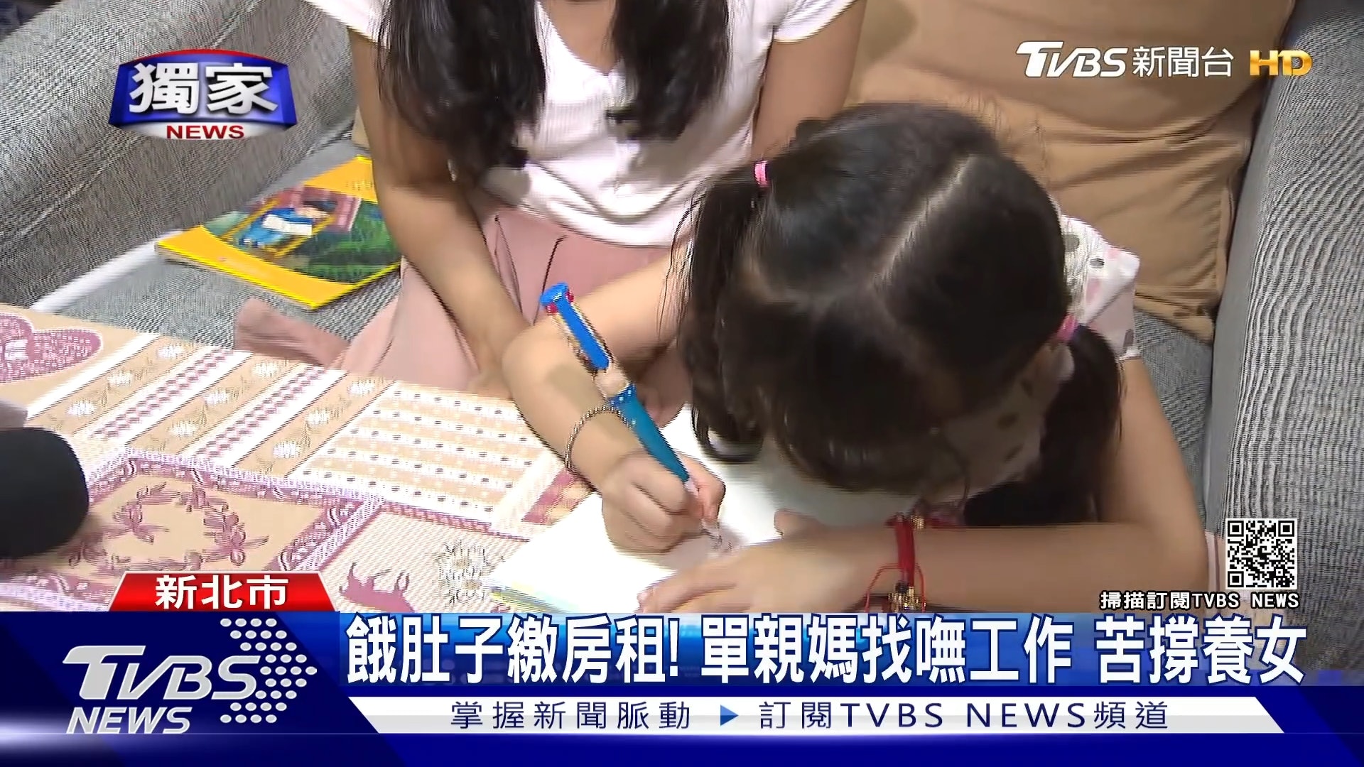 6 }) z: s; X' A4 tTVBNOW 含有熱門話題,最新最快電視,軟體,遊戲,電影,動漫及日常生活及興趣交流等資訊。帶著女兒讀書認字,租屋處狹窄燥熱,孩子靜靜畫著與母親手牽手的模樣,看在28歲單親媽媽眼中格外心痛。單親媽媽黃小姐:「疫情還沒爆發是想說,工作不至於這麼難找,結果疫情爆發導致,工作都沒有了。」止不住淚水,黃小姐之前帶女兒到泰國工作,但孩子6歲準備讀上小學必須回台灣,結果人回來遇到疫情升溫,投20多份履歷全吃閉門羹,不是暫時性歇業,就是無法提供面試機會,缺少面試證明,難以被認定是「失業者」,申請勞工紓困的希望當場抹滅。單親媽媽黃小姐:「真的就是很省著吃。」