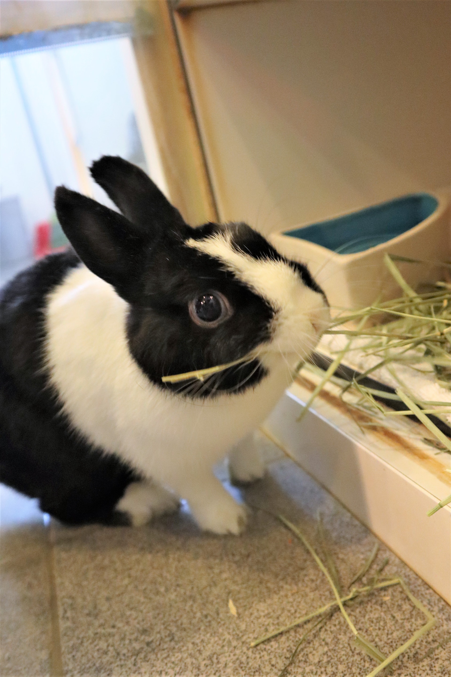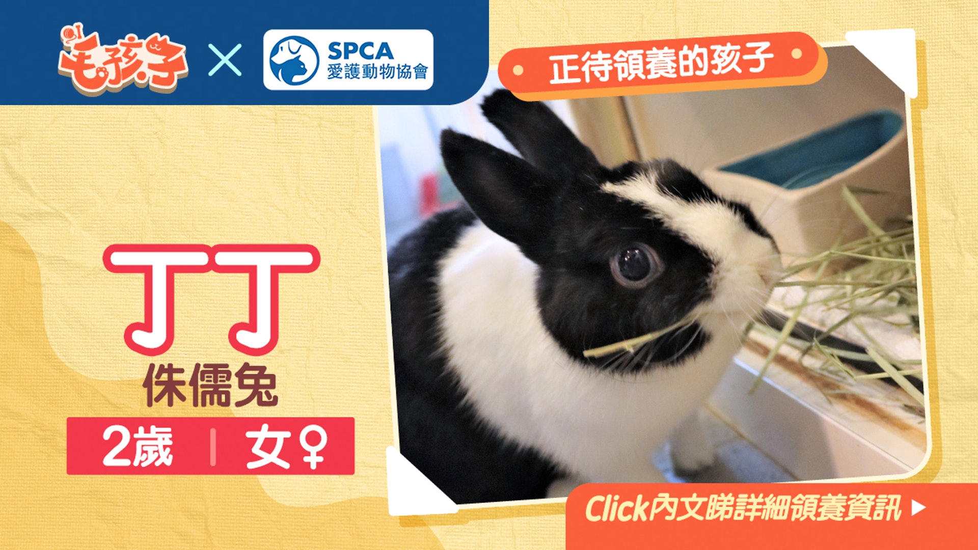 丁丁是隻好奇心滿滿的兔兔。每當你擺出要開牠房門鎖的姿態時,牠都會立刻衝到門前,期待著你開門的那一瞬間,然後跳出來探索一番!另外,丁丁亦有整理物件的嗜好,尤其喜歡把籠底的毛巾重新放置好。但請留意,丁丁是隻頗有脾氣的兔兔,心情不好時有機會給你一拳,所以我們建議有經驗且沒小朋友的家庭領養。如果你對丁丁有興趣,歡迎你來中心探望牠。