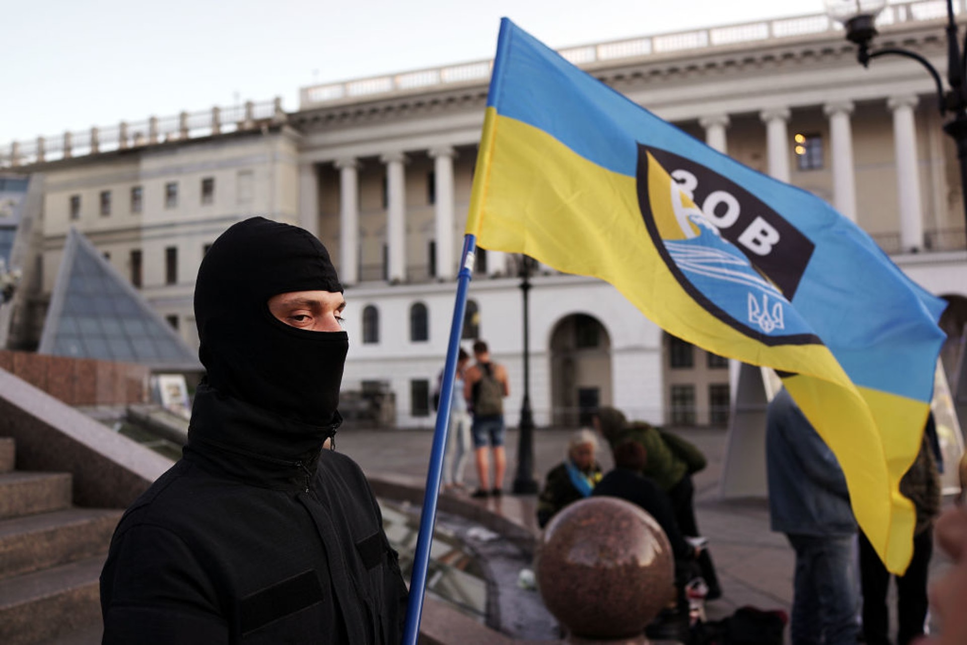 : @8 H$ ^$ _; n2 p; H' h6 l( @公仔箱論壇2014年9月4 日,烏克蘭首都基輔,兩名極右「亞速營」成員站在獨立廣場上。(Getty)tvb now,tvbnow,bttvb* {) Z' b, W; ?5 D