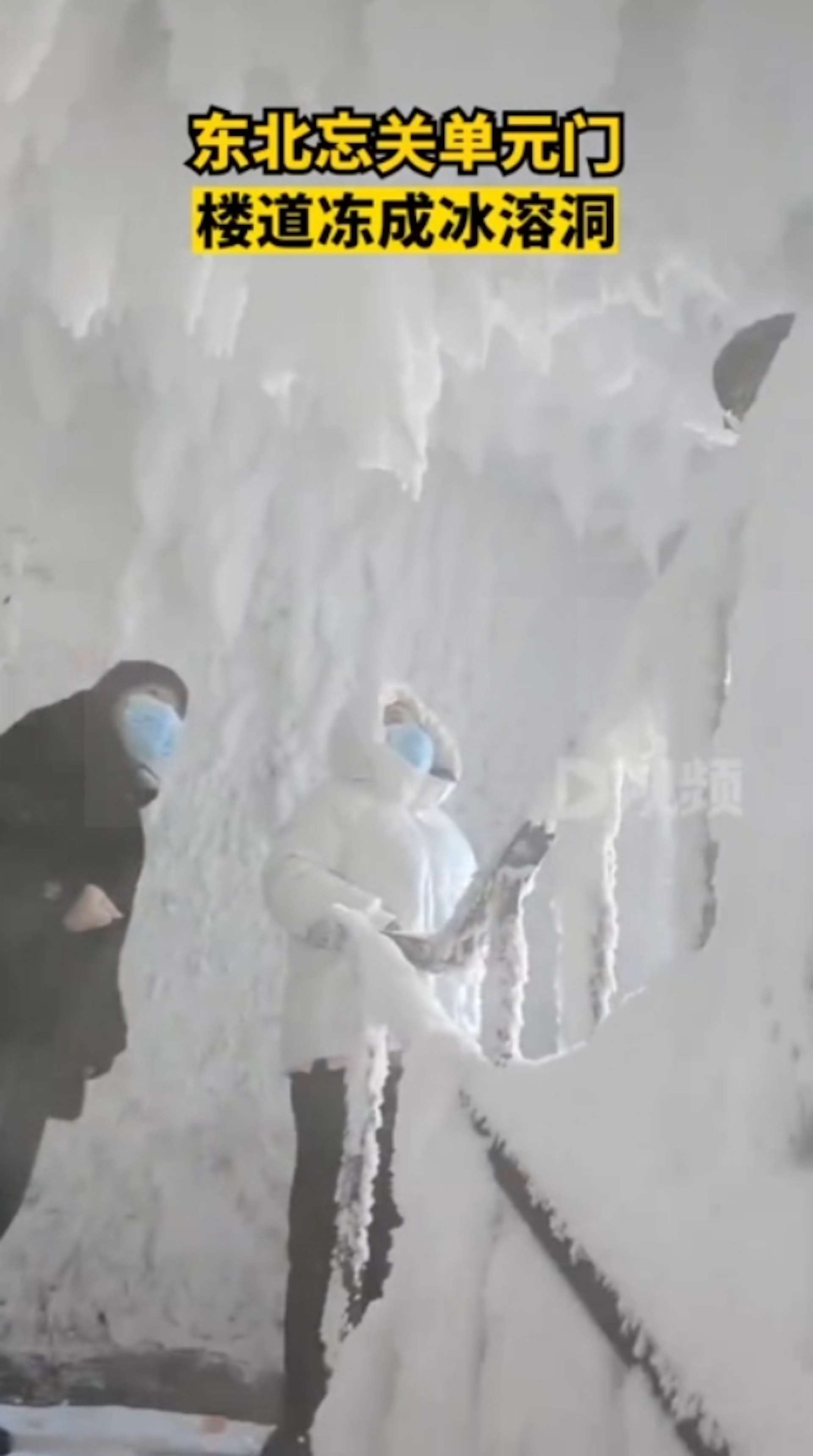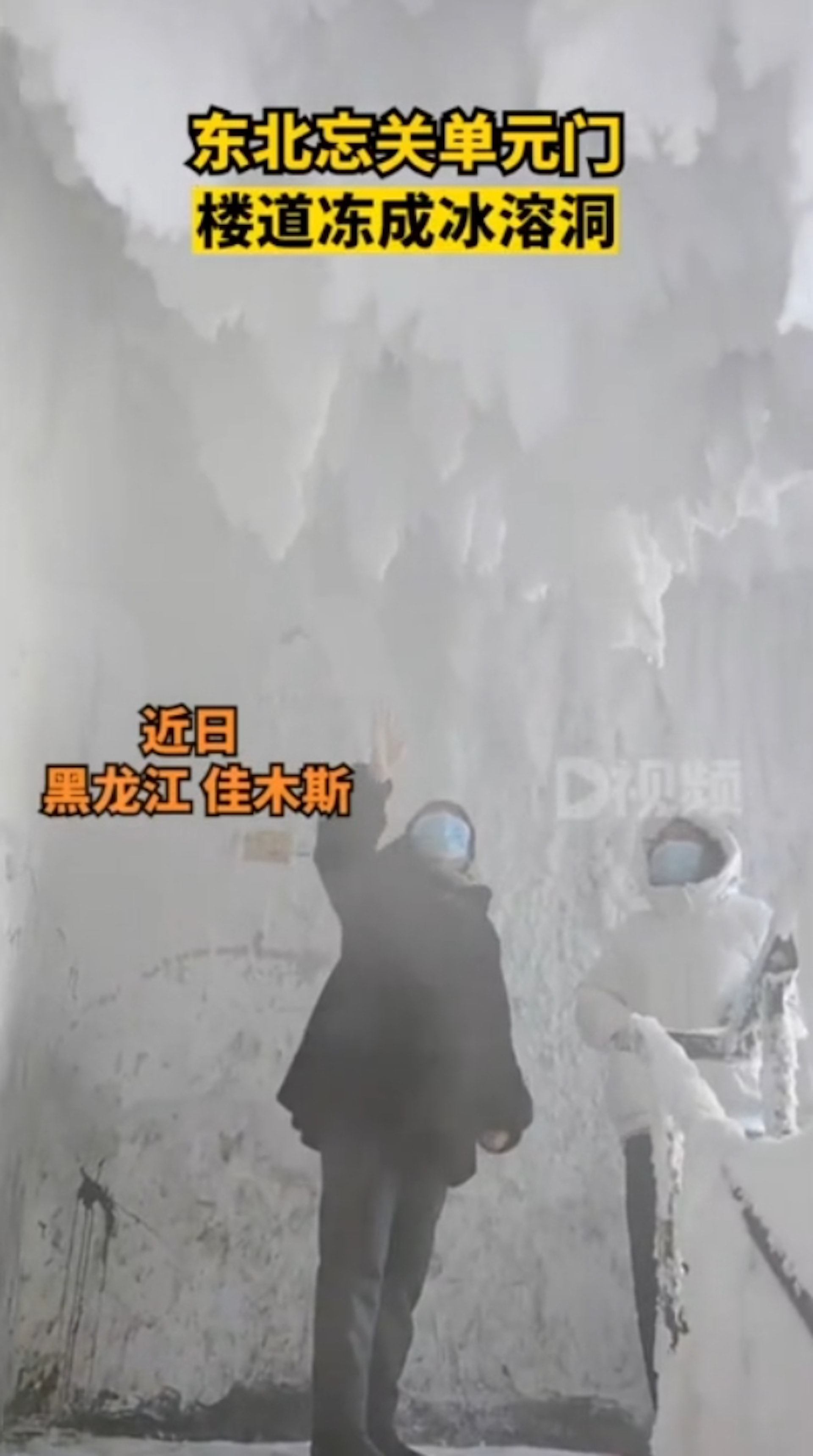 黑龍江佳木斯一住宅大樓近日就因一樓大門沒關好,經過一夜,整個一、二樓走道和樓梯就成為宛如鐘乳石洞的冰雪世界。(D視頻/聯合新聞網)tvb now,tvbnow,bttvb; J! }2 T/ R% O9 Y( z. S$ s