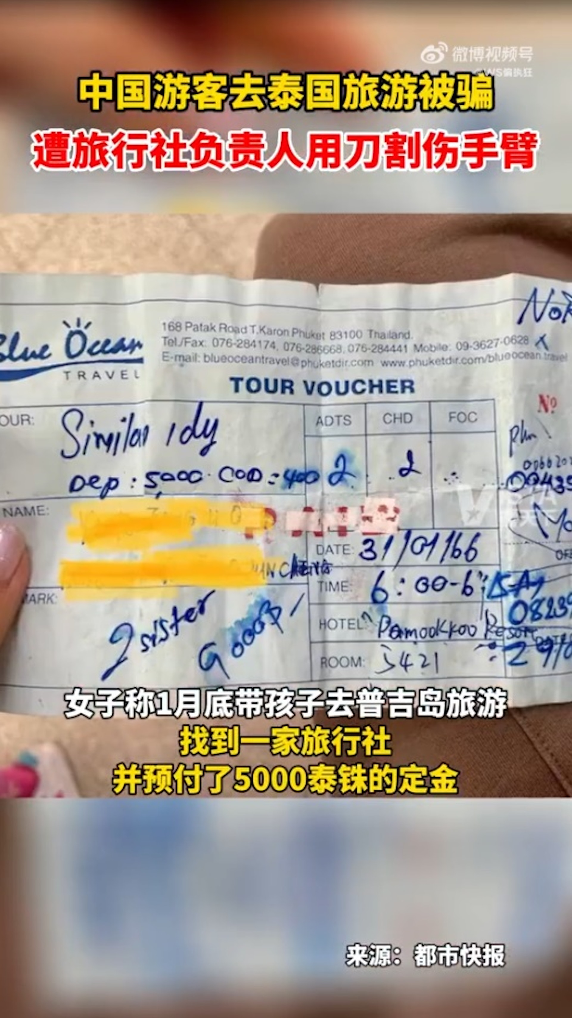 今年1月底,一名來自浙江的女遊客帶孩子到布吉島旅遊,為了更加方便遊玩,她找了當地的一家旅行社安排接送,並提前支付了5000泰銖的定金。+ G# d0 y$ A: s% g' t; ^7 B