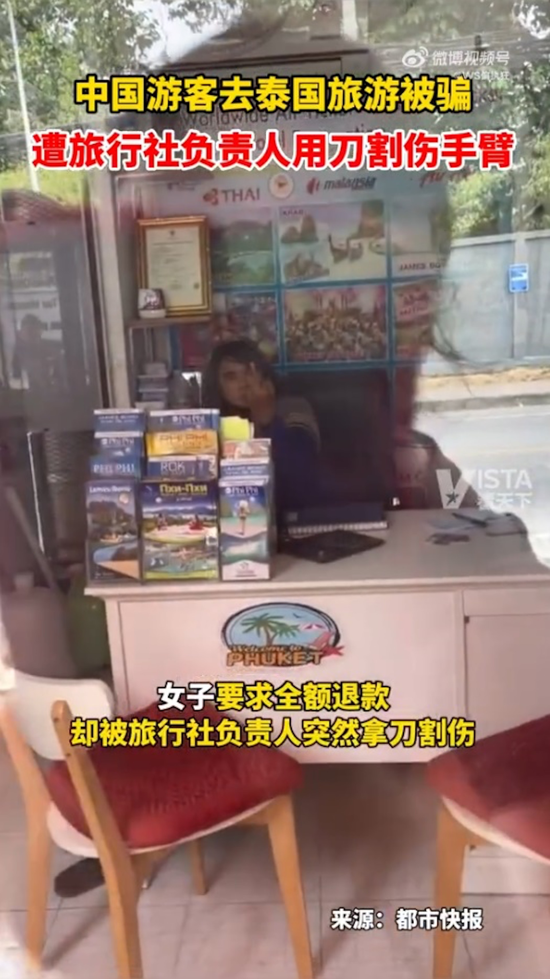旅行社負責人持刀割傷女遊客。(影片截圖)' c% i6 x0 Q9 G' y