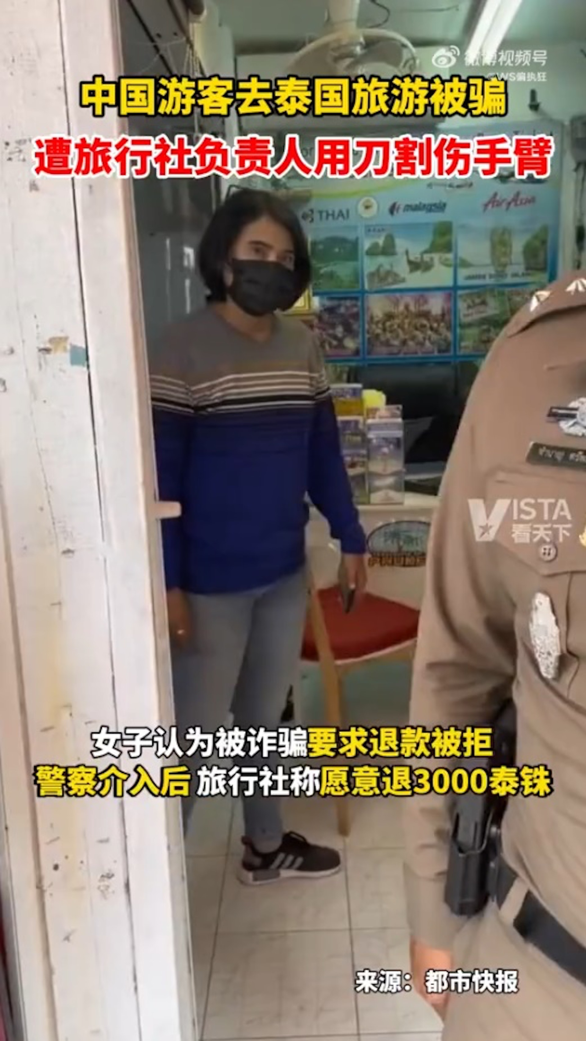 該名女遊客稱,當時自己要求全額退款,結果旅行社負責人表示「要麼拿着3000,要麼拿刀殺了你們」,之後更用刀割傷她的手臂。她隨後到當地警察局報警立案。目前,涉事女遊客已回國。公仔箱論壇8 m0 ^, W( j6 B( P