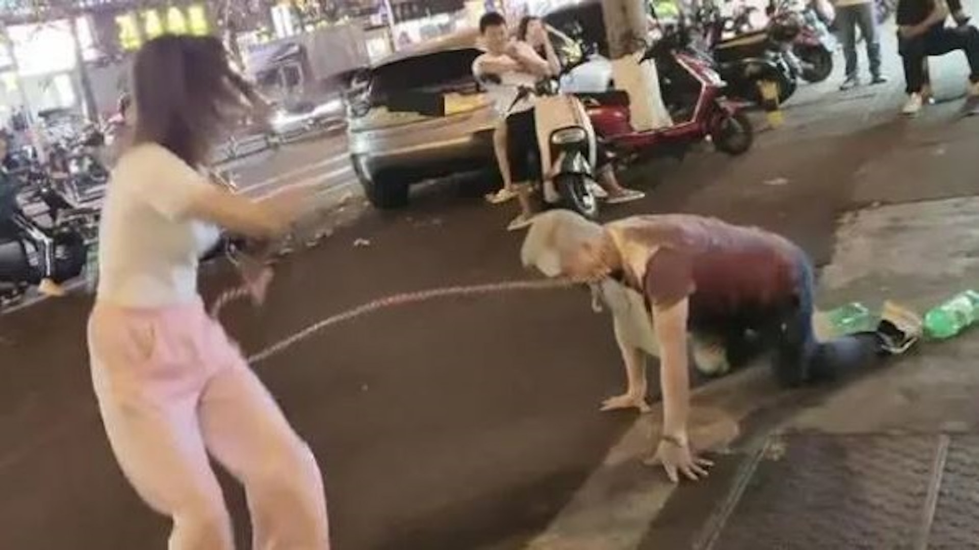 海南海口近日出現令人咋舌的一幕,一名女子用鐵鏈牽著一名男子,前者對在地上爬行著的後者邊抽打邊直播,場面齷齪。目前,二人已被行政拘留。TVBNOW 含有熱門話題,最新最快電視,軟體,遊戲,電影,動漫及日常生活及興趣交流等資訊。6 M5 t, ]9 p/ e