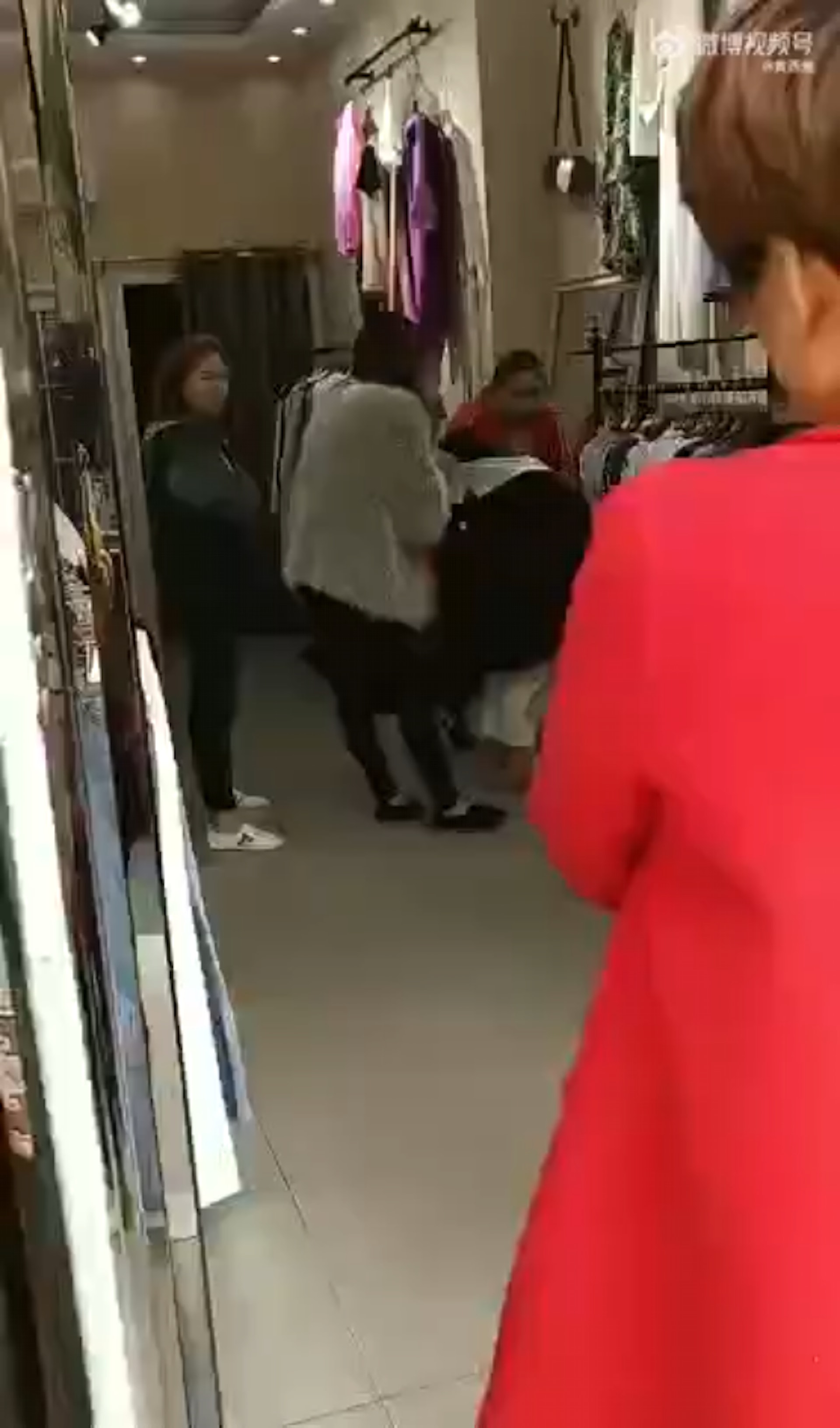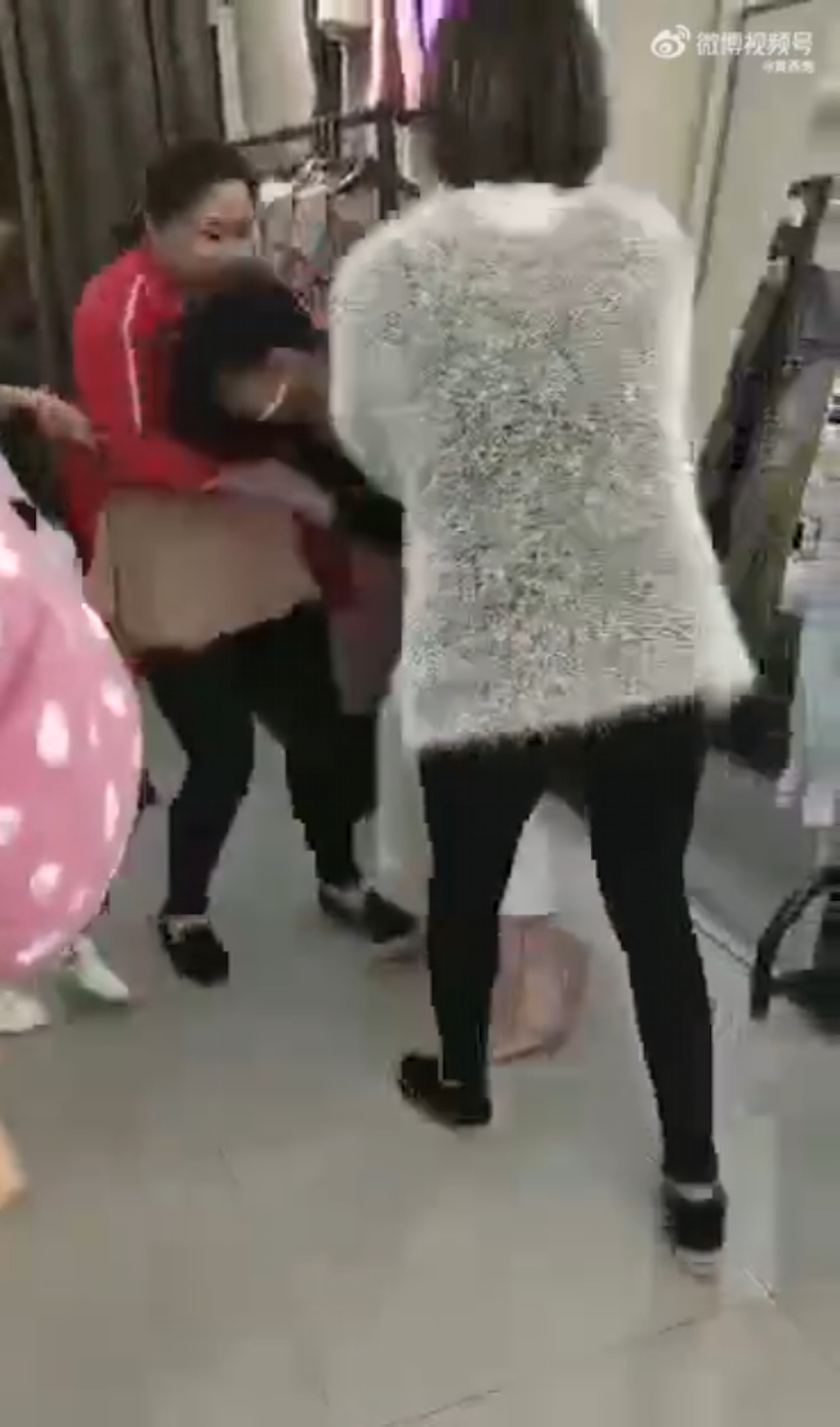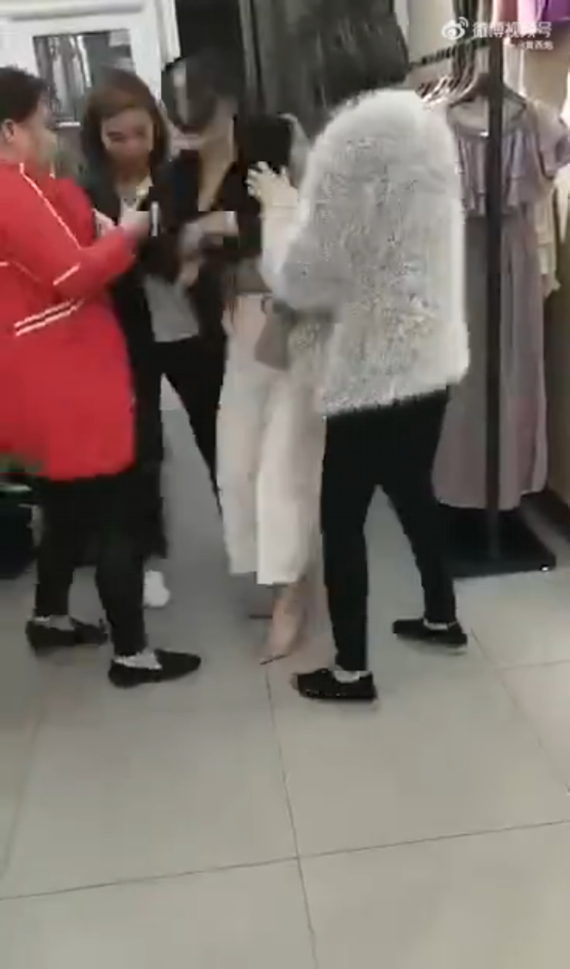 ) b& G l; f/ t; B6 S, }有被指控為小三的妙齡女子,遭正宮攜姐妹扒衣服剪頭髮。(影片截圖)