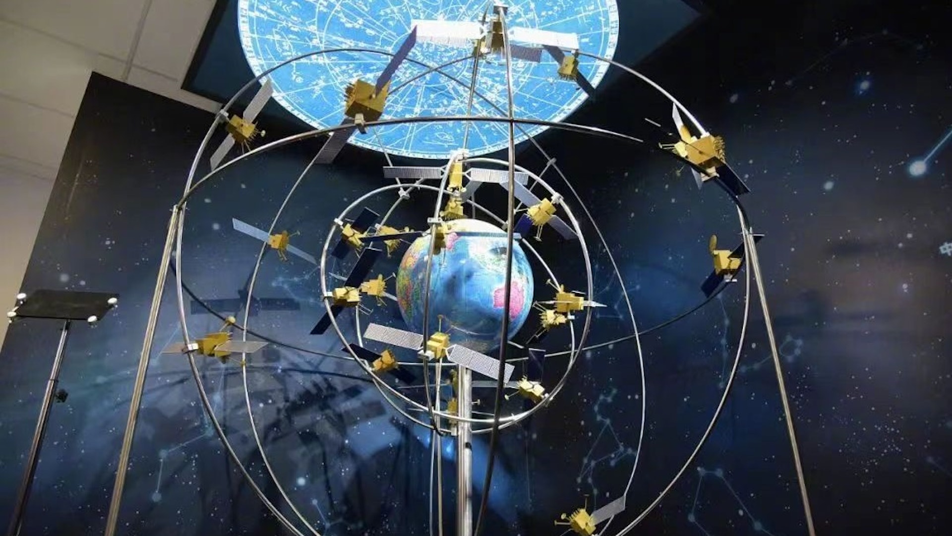 , @& I4 [) F H1 ?) m+ B北斗衛星導航全球組網模型。