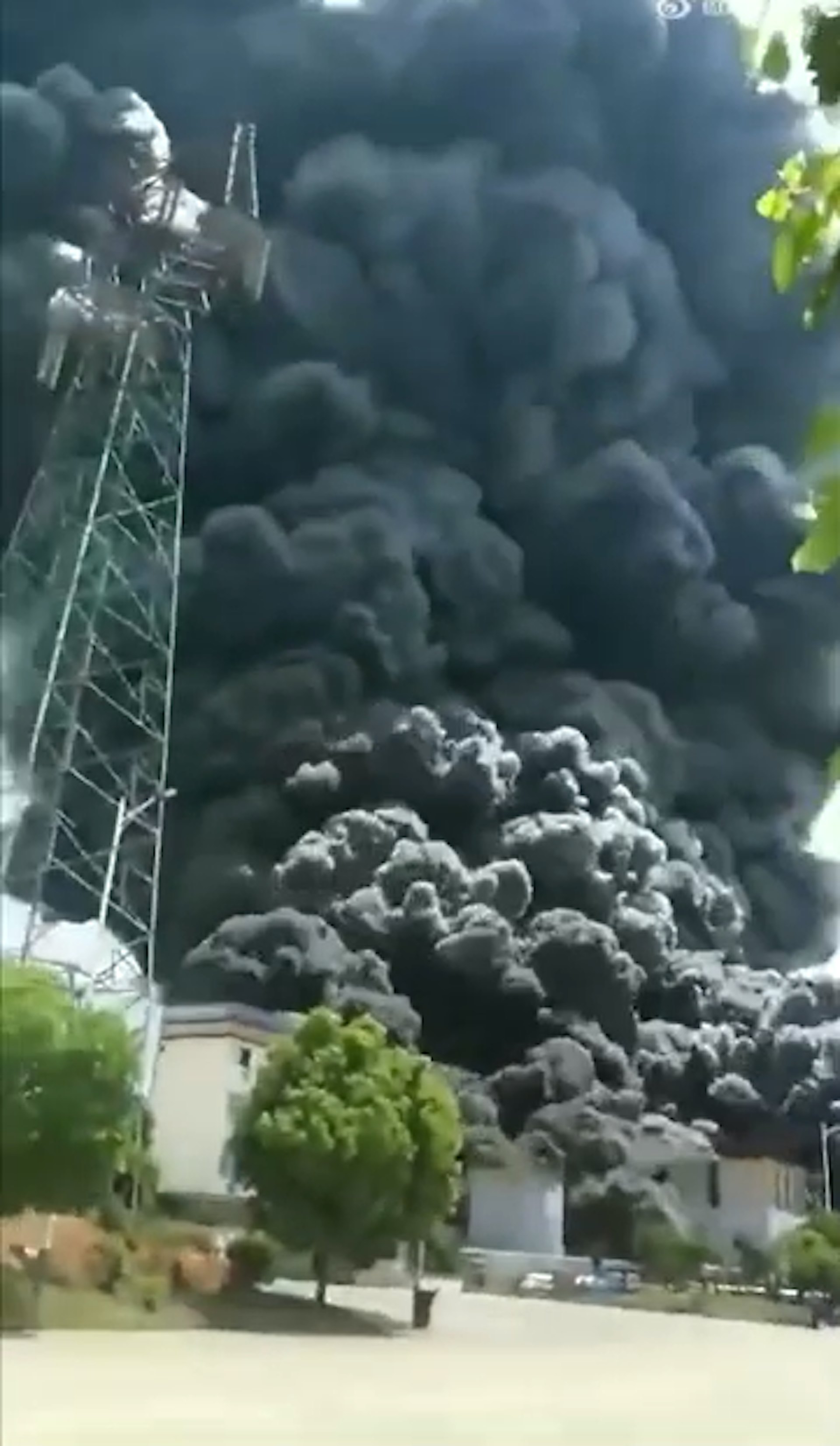 1 C: M( S6 i, C$ z5.39.217.76央視影片顯示現場黑雲密布,網傳多段影片也可看出黑雲漫天,工廠有火光,更出現黑色蘑菇雲。許多網民祈求平安的同時,也憂心會否之後造成環境汙染。