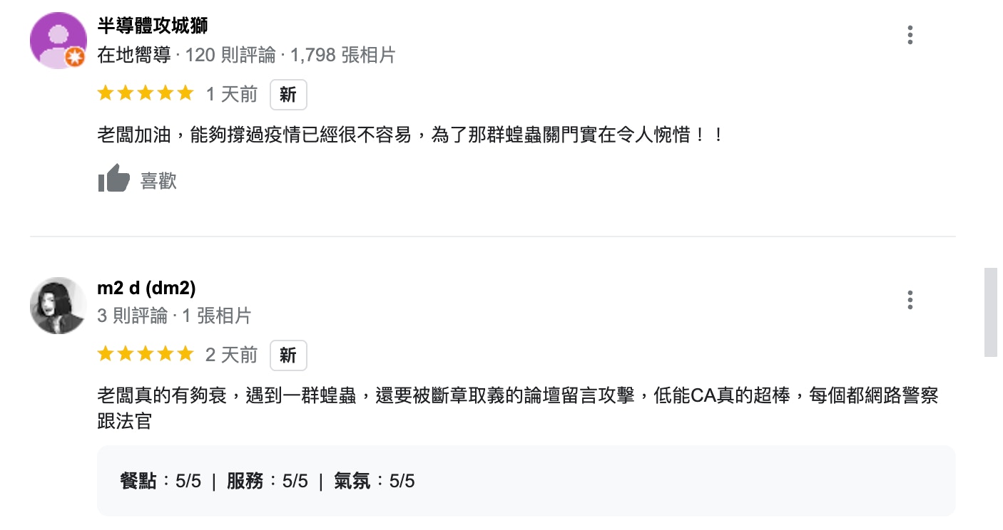 ( i6 a) s7 f. H: `( L e網民對白飯之亂的看法。(大道創意料理熱炒google評論)