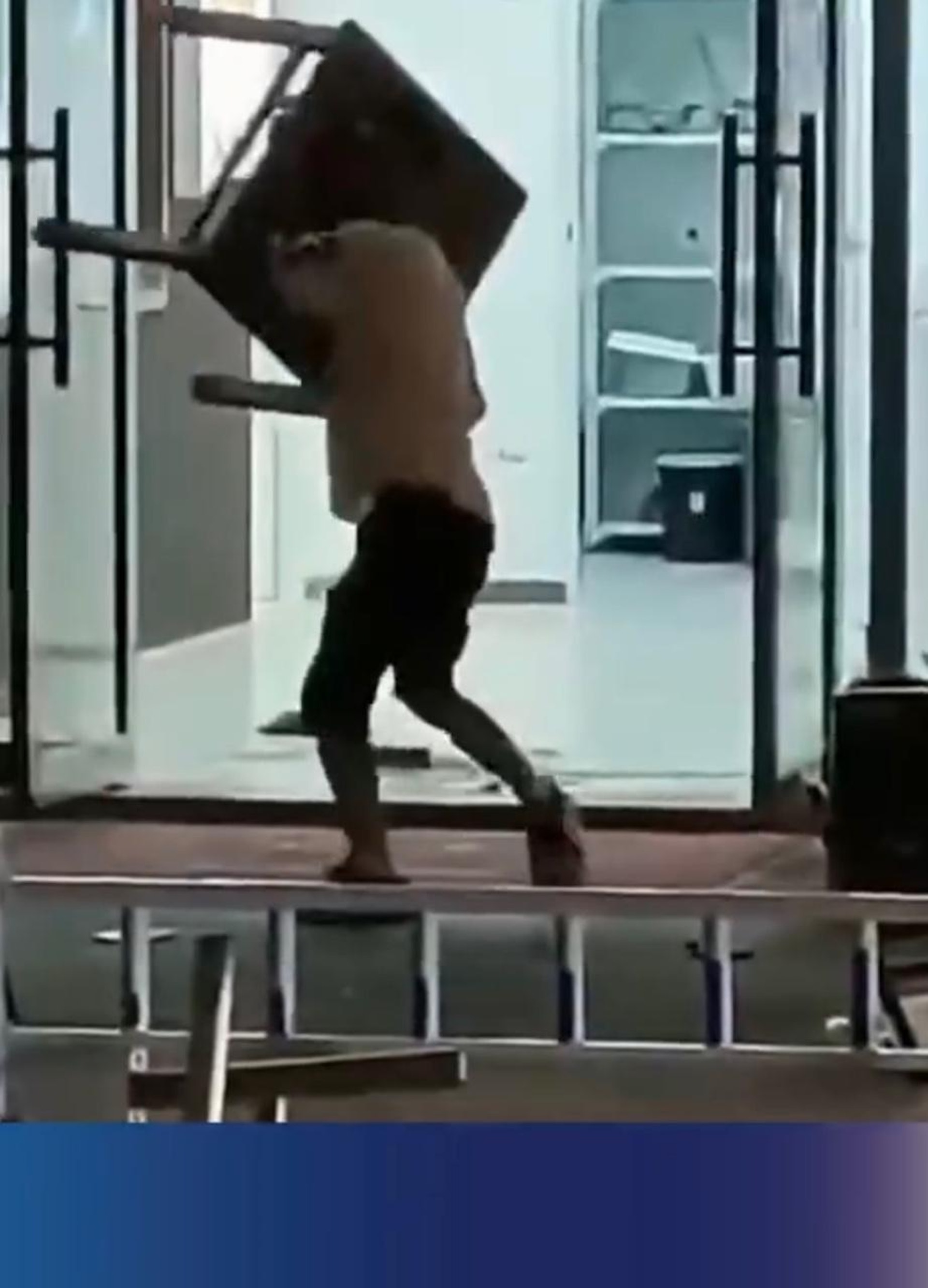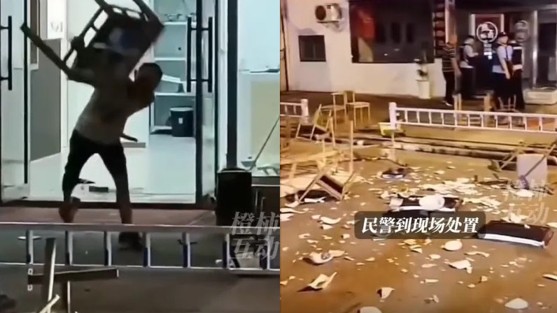 江蘇鎮江有龍蝦館老闆疑因生意難做,深夜情緒崩潰砸店。(微博)