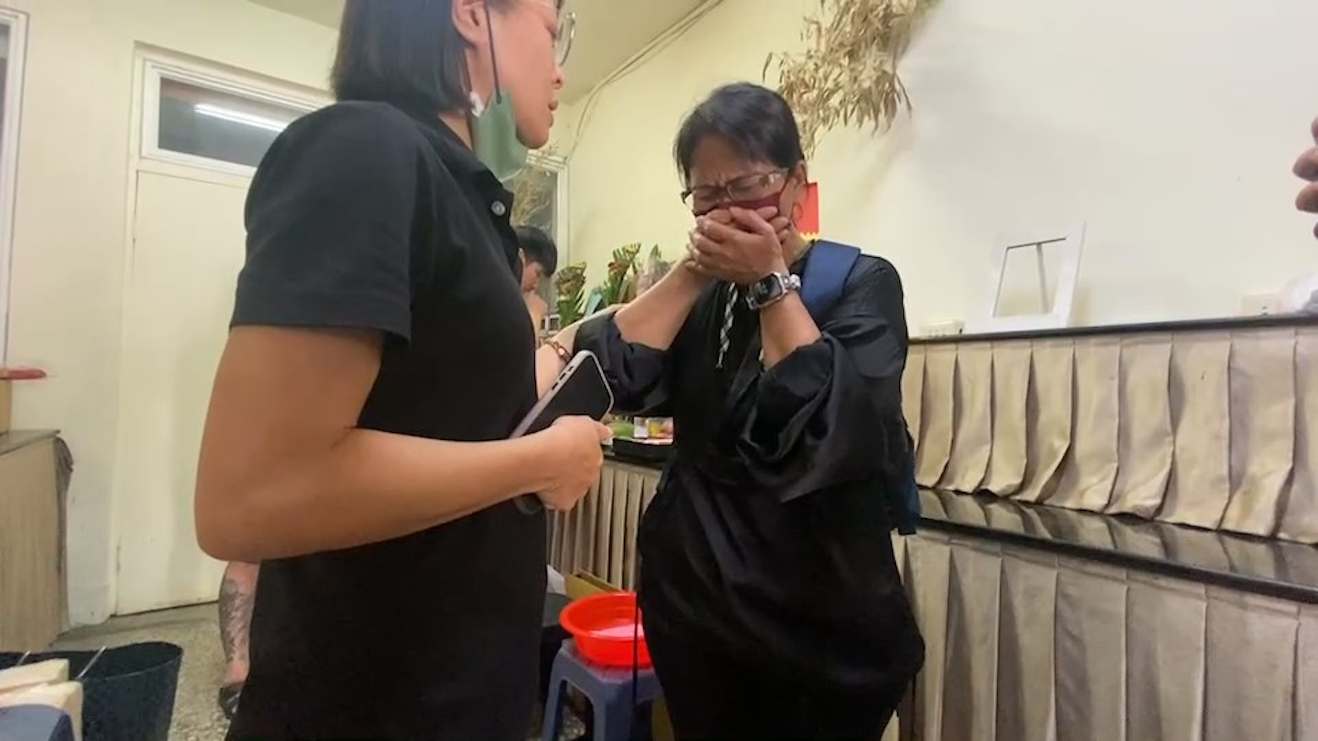 蘇媽媽幫女兒到她男友牌位前雙手合十致意。(中天新聞授權使用)