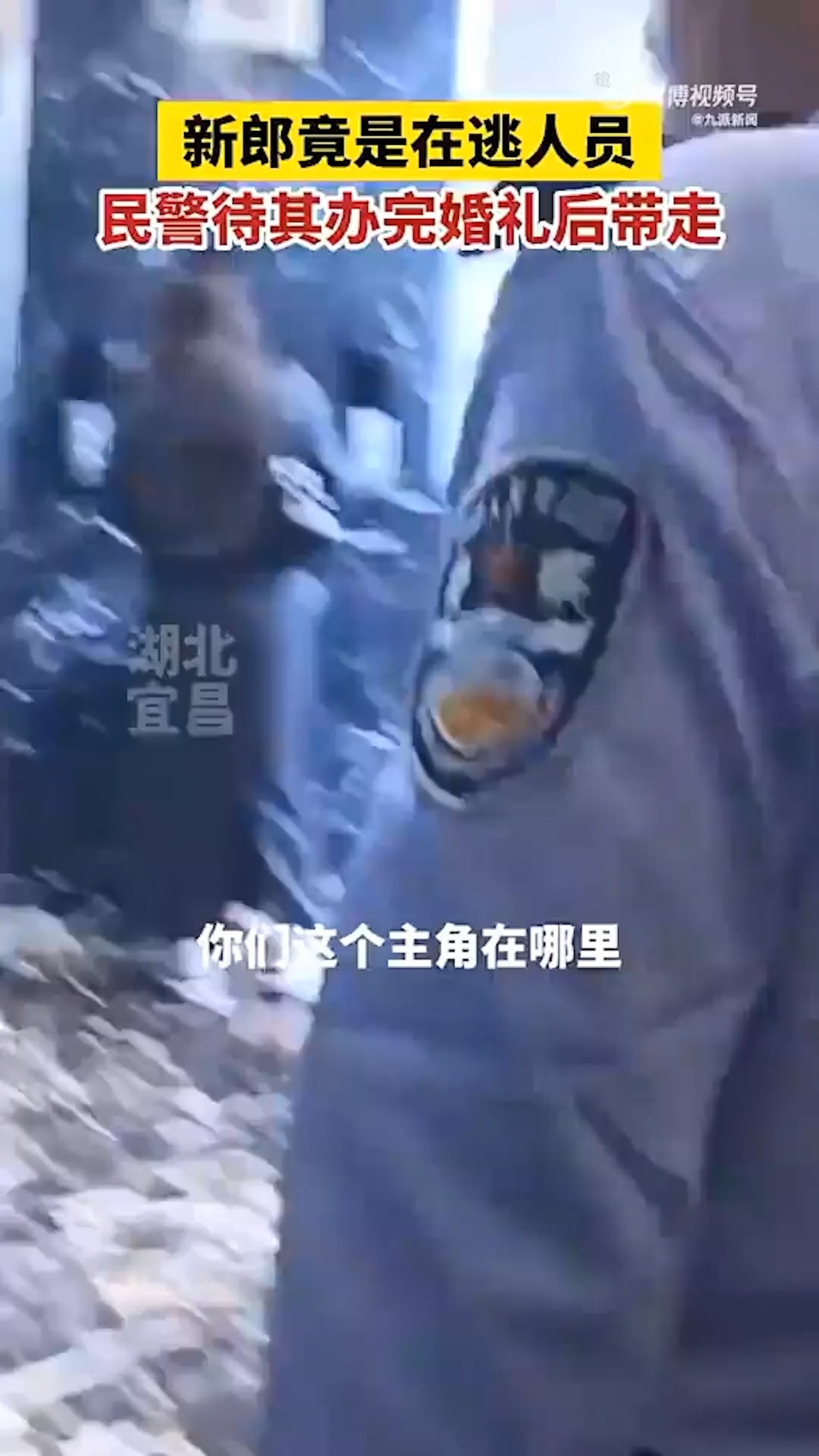 讓他完成婚禮真的好嗎?湖北警方日前展開拘捕逃犯行動,目標是婚禮現場的新郎哥,內媒形容警員「人性化執法」,在會場內讓新郎先完婚,沒有上手銬就將他帶走。消息指新郎是逃獄的重刑犯,逃亡後行事低調,直到接到舉報,警方知道他在當地某酒店擺酒,於是策劃拘捕行動。不過,許多網民質疑警方做法,認為應該馬上拉人走,「新娘才是最慘的」,指她有可能不知道丈夫是逃犯,「感動自己系列,新娘做錯了什麼」。
