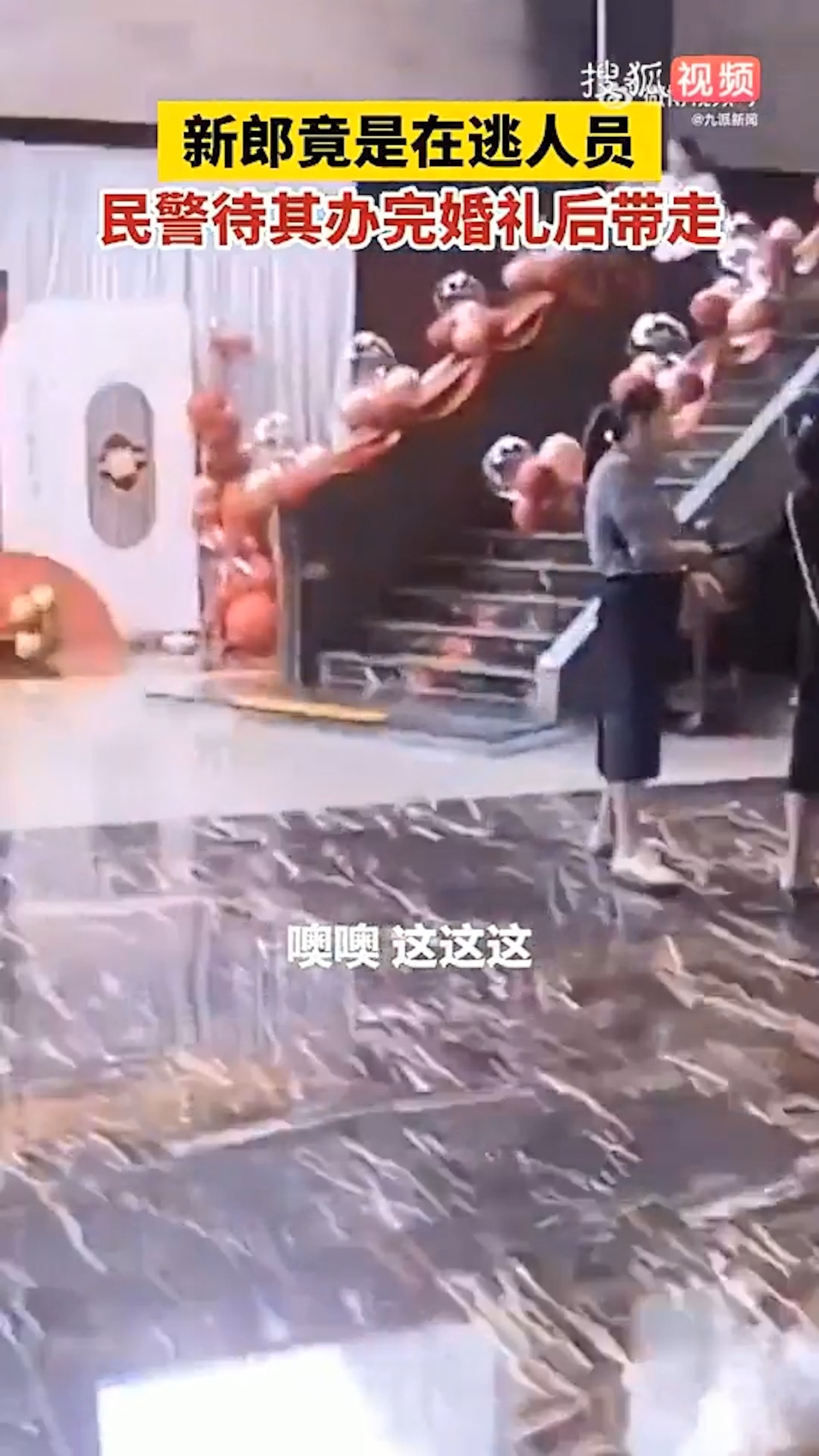 消息指,張姓新郎是重刑犯,早前逃離監獄,警方接報他在1間酒店辦婚禮。婚禮當日,警方在酒店周圍布防,並通知酒店職員不要透露警方行動消息。警方在婚禮展開後才低調進入酒店,婚禮過程平靜,一對新人和親友慶祝,直至新郎被帶走,現場賓客大感驚訝,不知新郎是逃犯。