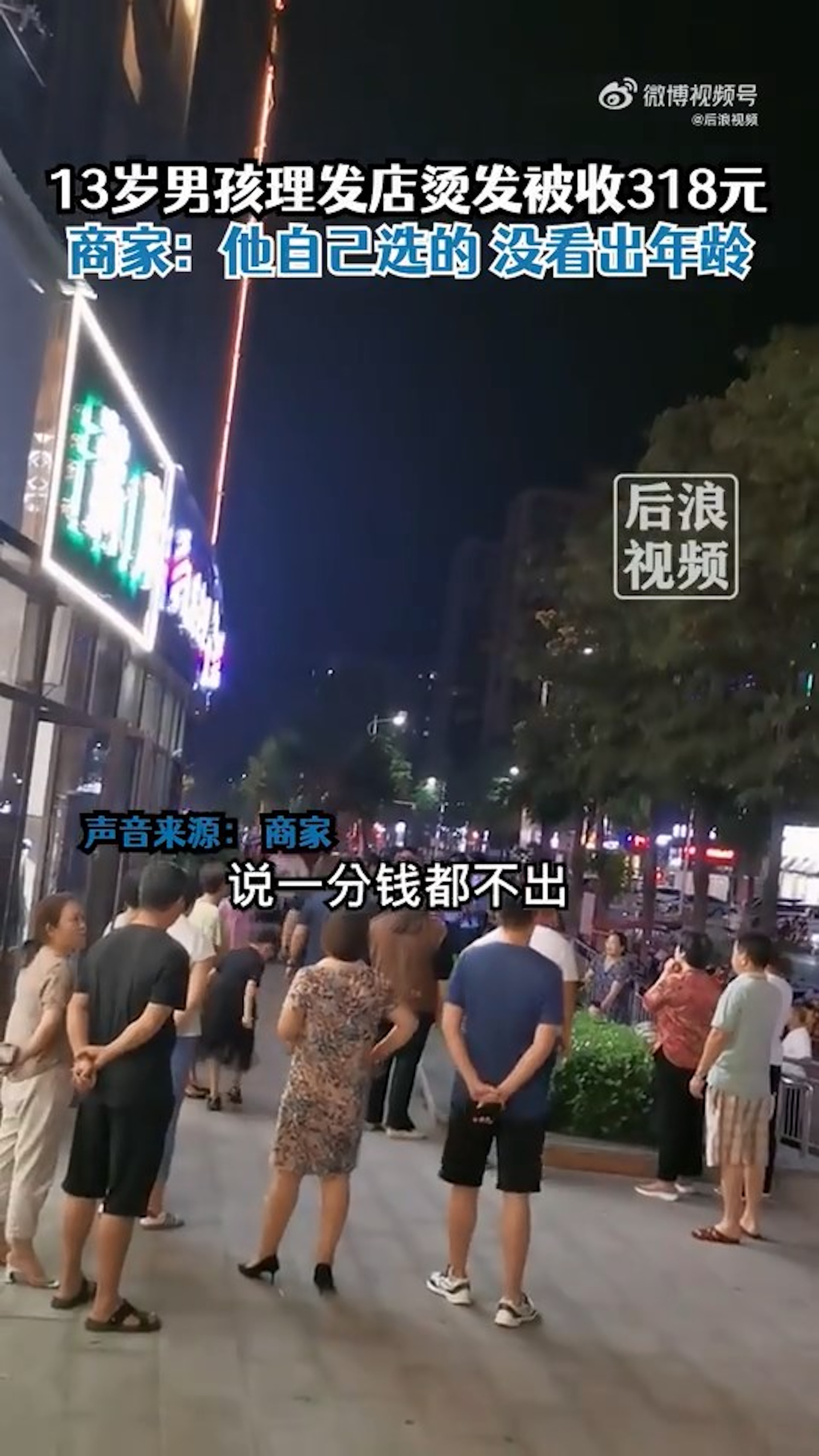 3 y7 t+ j+ g+ @$ t* F6 {公仔箱論壇天價理髮?內地河南1名13歲男孩獨自到理髮店,花費318人民幣(約350港元)燙髮(電髮),詎料父母得悉後不滿,認為理髮店收費太貴,報警要求全額退款「一分錢不出」。最終經協商,理髮店須退回200人民幣(約220港元)。事件引來網民熱議,不少人認為店方「無辜」,斥責男孩父母無理,「明碼標價的,這也能退嗎?」、「正常消費還怪別人」、「浪費警力」;也有網民認為,未成年人容易被誘導消費,需要保護。