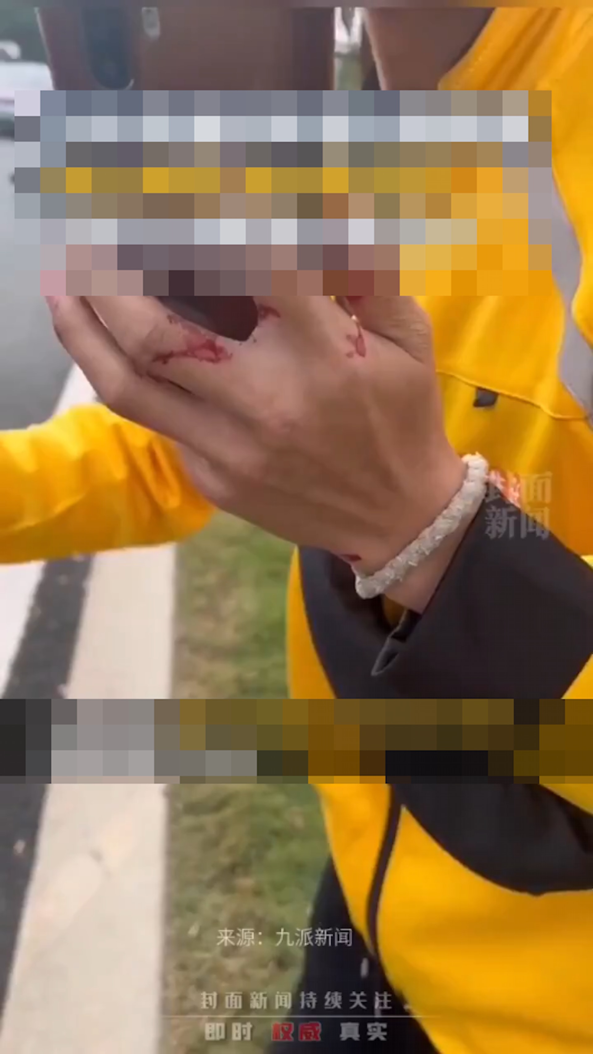 事發於周四(16日)下午3時,網傳影片顯示,被撞的紅色保時捷車身有明顯刮痕、泵把亦有受損,一名身着美團外賣服裝、手部及面部有血漬的男子,在鏡頭內說,「你這車我真的賠不起。我有錯在先,我只能分期了。」