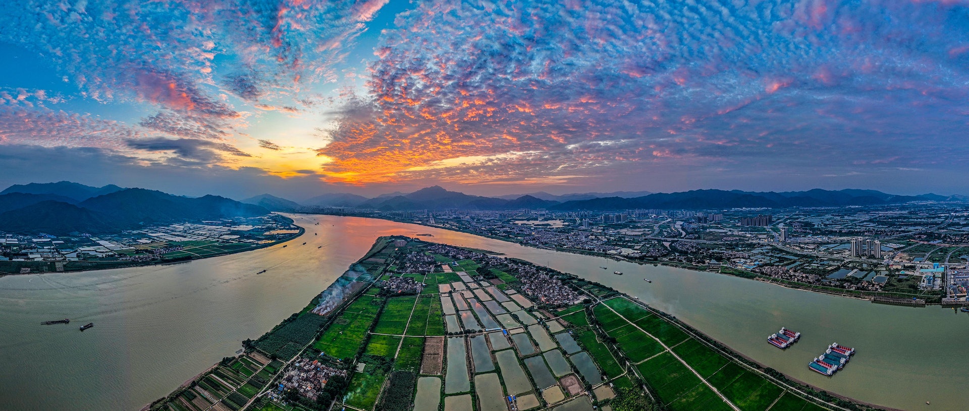 桑基魚塘、大榕樹蔭、水鄉蕉林……硯洲島上繪就著嶺南特色的風情畫。陽光沙灘、逐浪划船、飛行跳傘……各式各樣的娛樂項目又給島上帶來新的活力。風起綠洲吹浪去,硯洲島兩側江水不息,新一代人正用這方「古硯」繪就出新的繁榮畫卷。