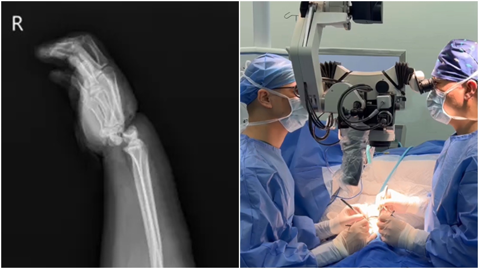 手術中,醫生先用500毫升抗凝藥液為小美疏通手掌血管,再復位腕部斷裂和脫位的骨頭,然後接通8條血管,修復挫傷的神經,縫合斷裂的腕部肌腱,耗時4個多小時為小美「保住」右手,重建右手血運及功能。+ M/ }: x- d* e' C8 Z