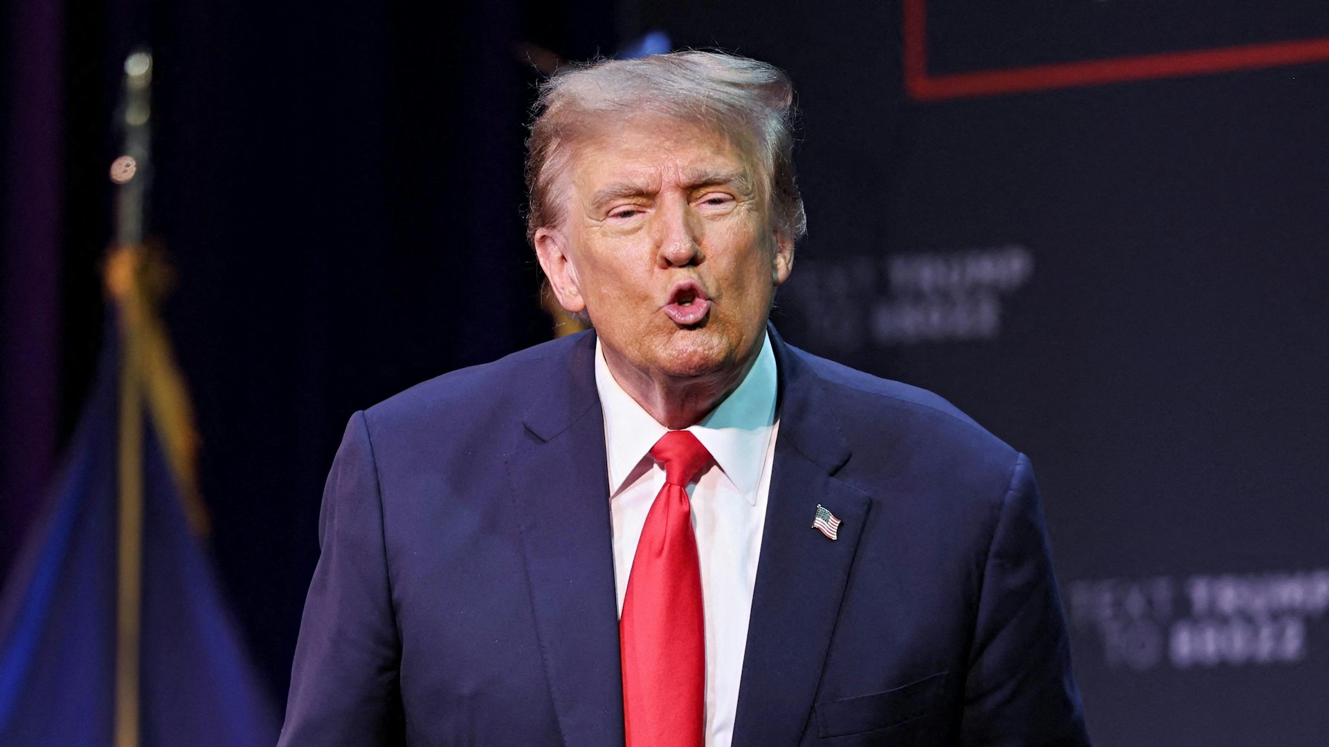 / p' U1 K6 S1 O! A9 R, G. r5.39.217.76圖為2024年1月21日美國前總統、共和黨總統參選人特朗普在美國新罕布什爾州羅切斯特(Rochester)出席新罕布什爾州共和黨初選選前集會。(Reuters)