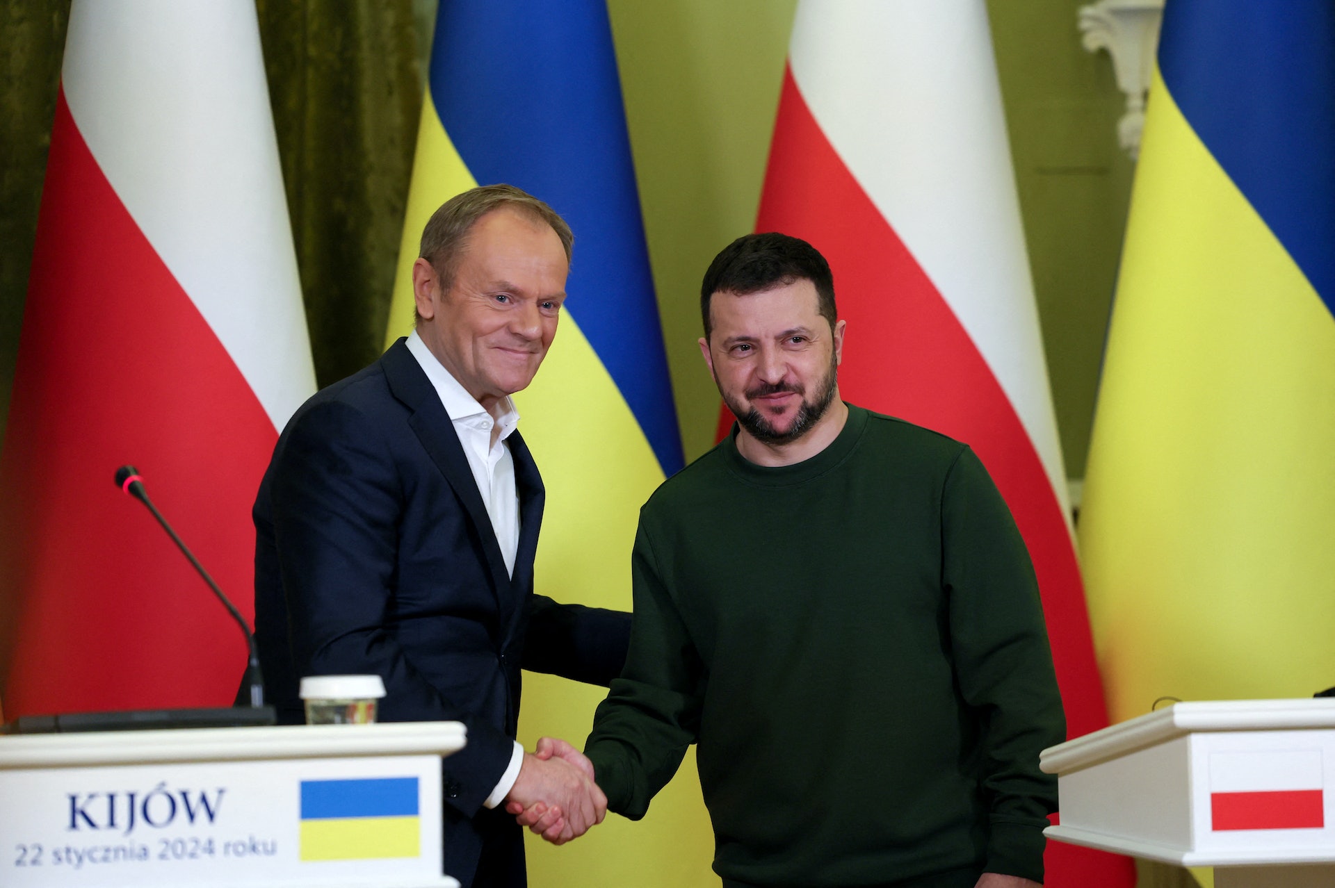 3 y, i! Z" q" t* D. I/ h1月22日,新上任的波蘭總理圖斯克(Donald Tusk)訪問基輔,與澤連斯基見面。(Reuters)公仔箱論壇+ x7 B, F2 ^8 `4 T6 Z