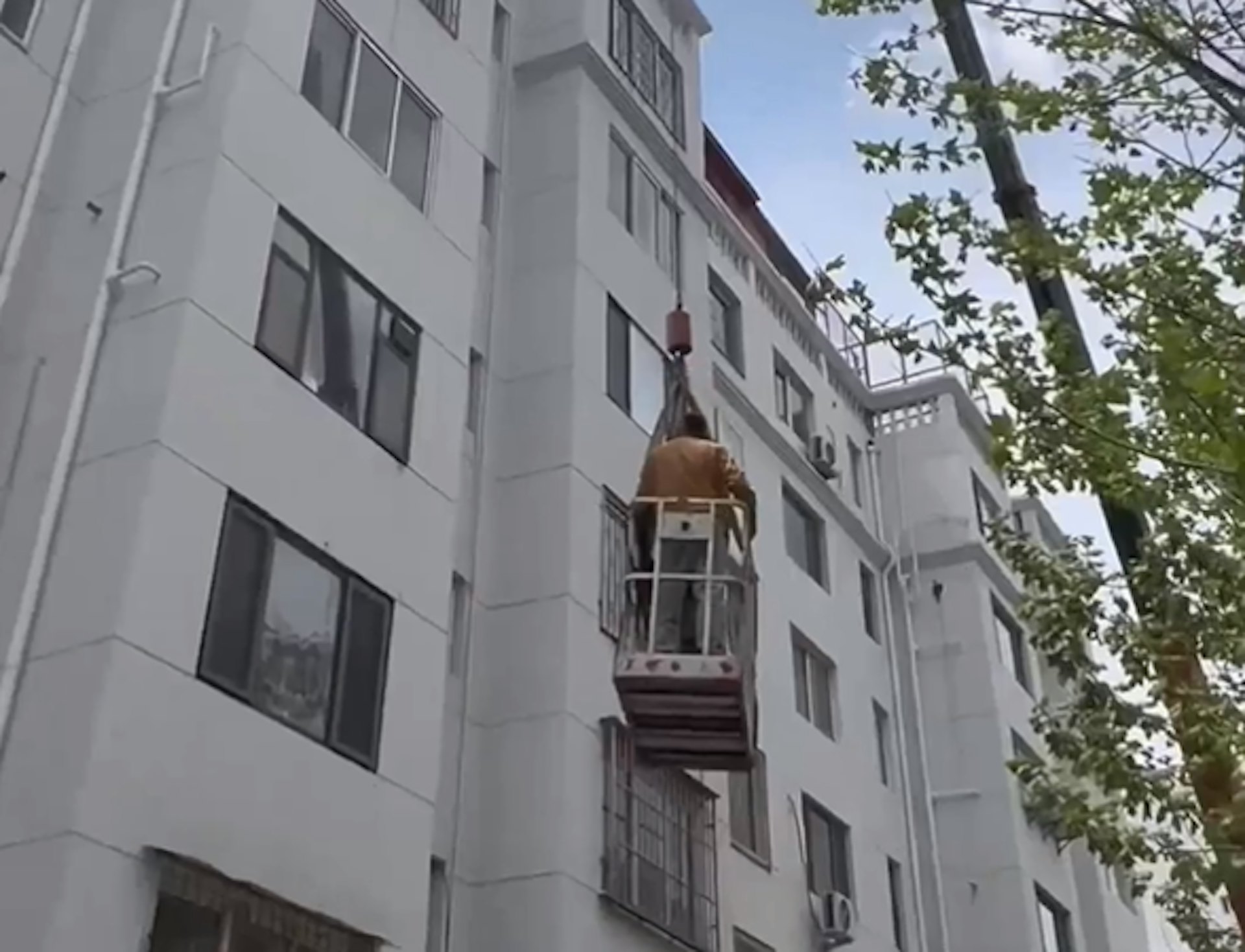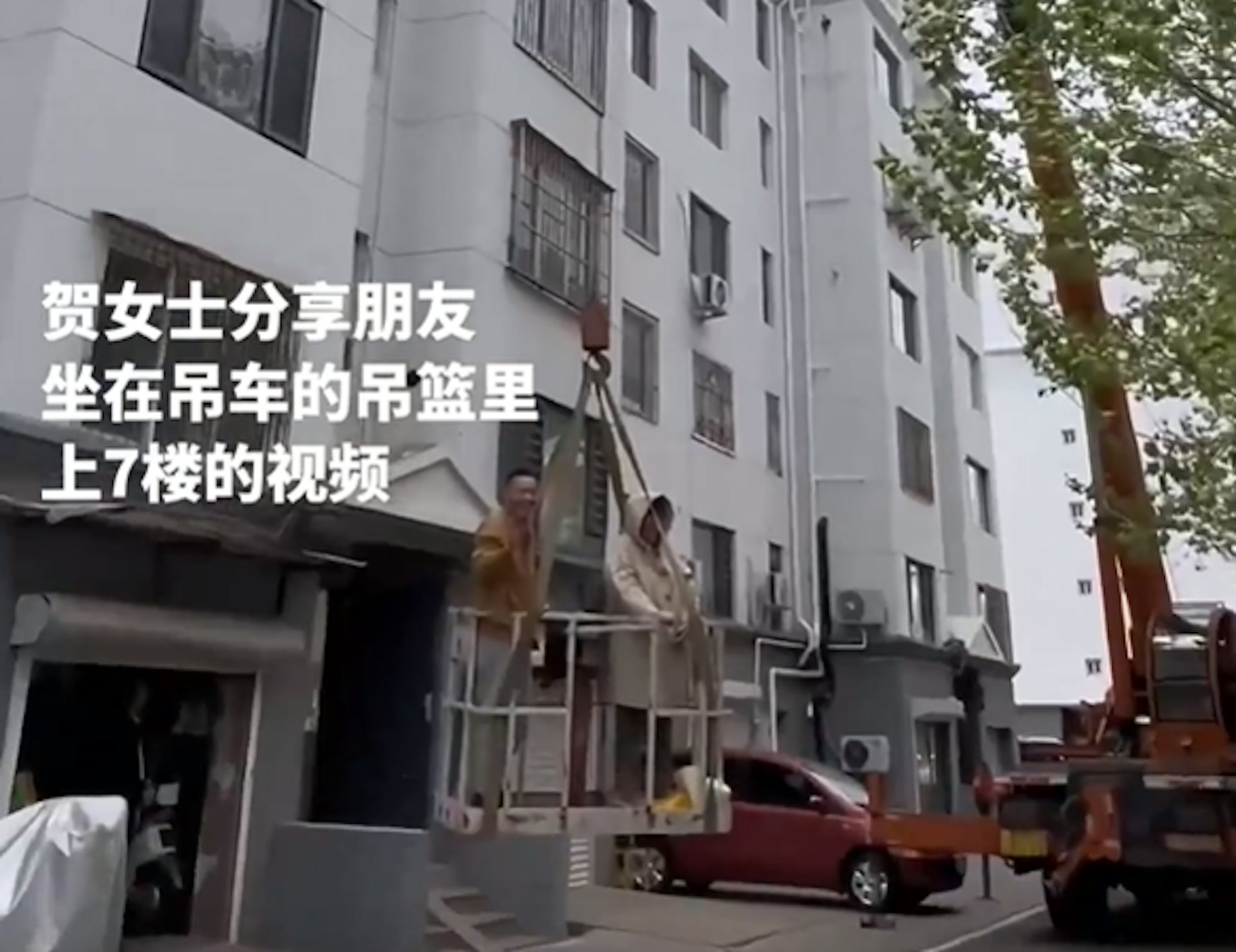 2 q" A. b" B) U河北秦皇島一名剛剖腹產完的女子6日返家時,因家住7樓但無電梯,家人擔心她腹部的傷口會裂開,花了200元(人民幣,下同)叫來吊車把她「載」到家裡的陽台,相關影片引起熱議。公仔箱論壇, r7 [5 l5 D& ]% h