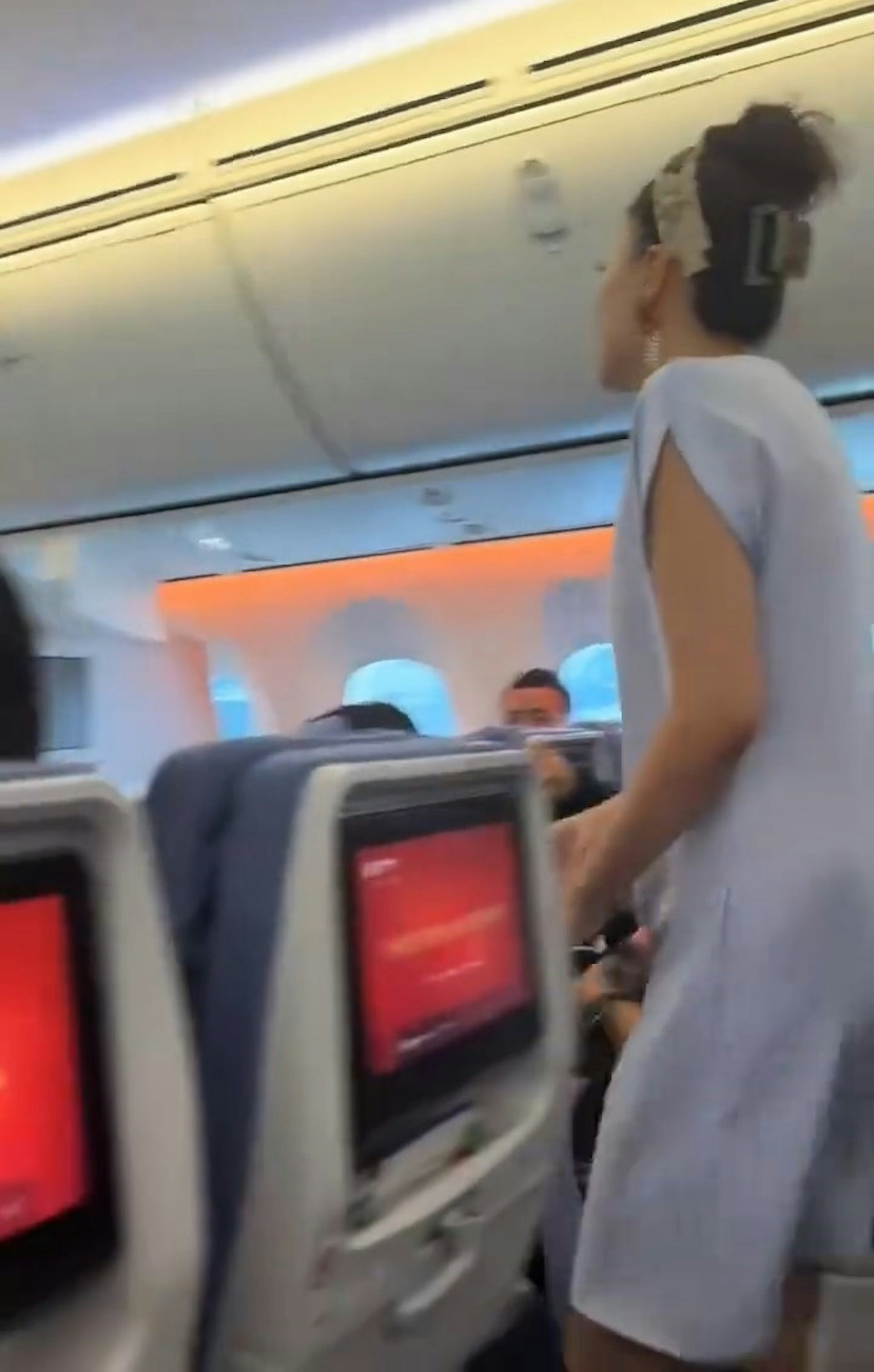 ! _6 W& Z7 N# w0 U( o. G d* ~0 M# N網傳影片顯示,一名身着紫色上衣的女子與兒子搭乘國內航班,期間兒子哭鬧着衝入頭等艙,但被空中服務員制止。女子其後便質問空中服務員,「有空位為什麽不行?這不是有空位嗎?」過程中,女子態度十分強硬,又稱「我沒辦法回去,(位置)太恐怖了。」; B- a j; _7 Z3 U8 `) V