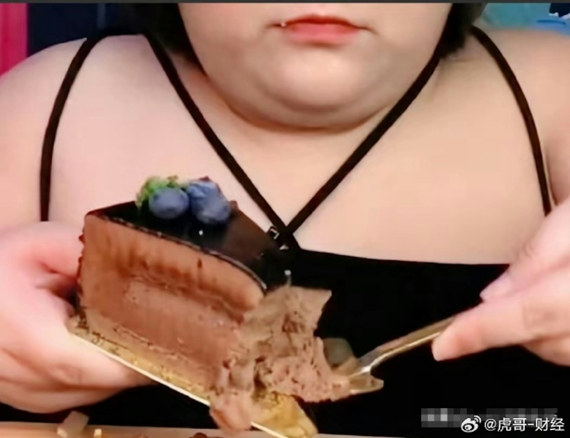 潘曉婷原本是一名普通的服務員,在看到同學劉琪通過吃播賺取了不菲收入後,她決定投身吃播。(微博截圖)