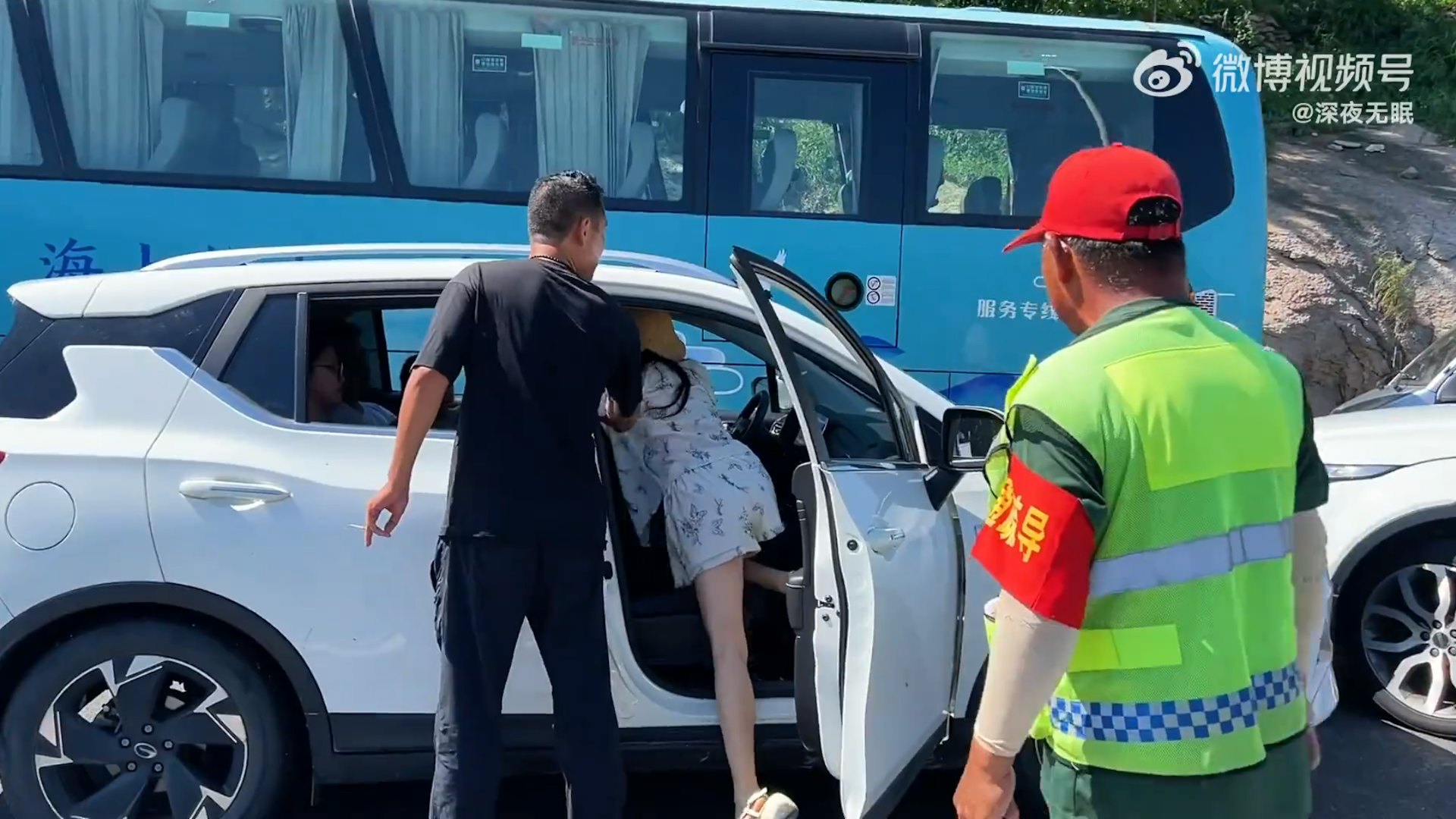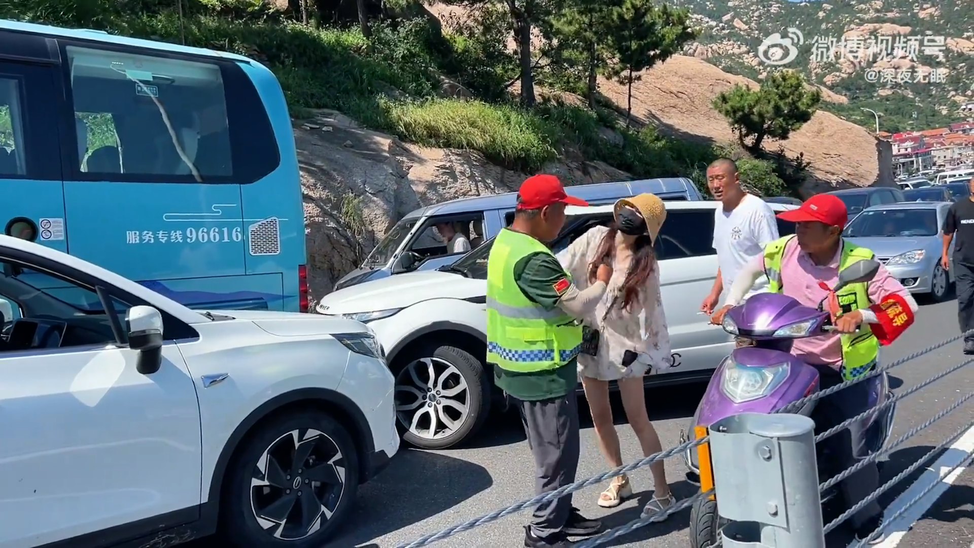 事發於青島嶗山風景區,網傳影片顯示,女子駕駛的白色路華越野車追尾前方巴士後,幾乎打橫停在對向車道,導致其他車輛無法通過。肇事後,女子下車瘋狂大喊,並認為對面正常行駛的男司機不讓路才釀成車禍。