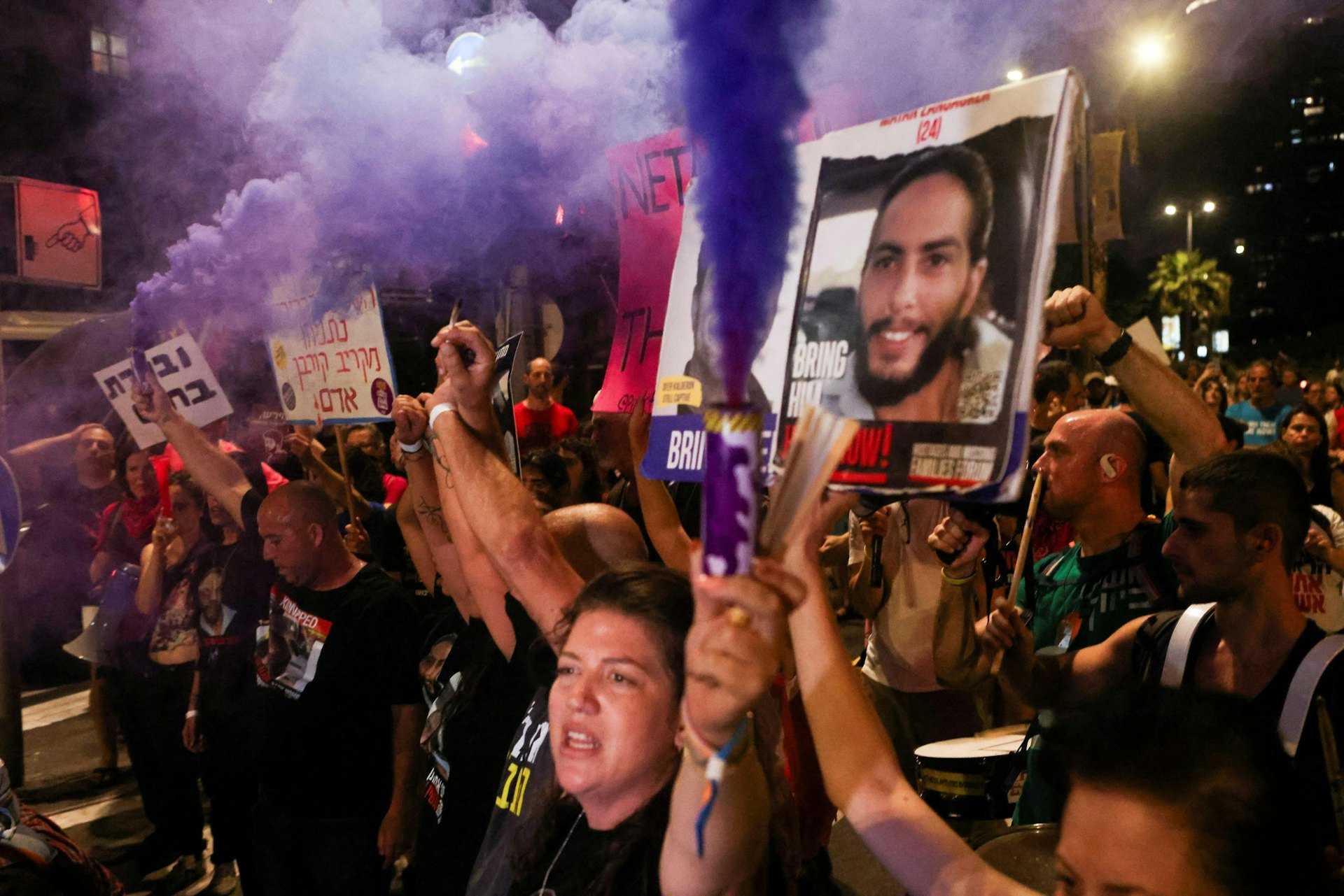 * g! A5 g" Z# etvb now,tvbnow,bttvb圖為2024年9月14日,以色列民眾在特拉維夫示威,促政府盡快達成停火協議,促成人質獲釋。(Reuters)