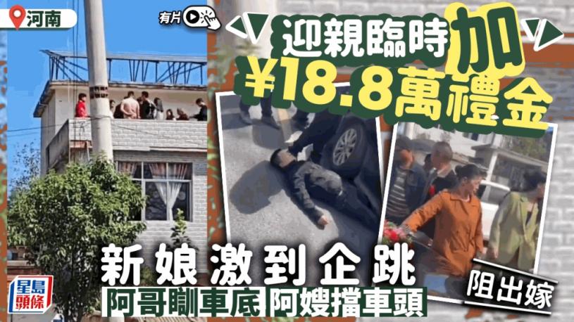 據內地網絡流傳的影片及報道顯示,河南信陽淮濱縣谷堆鄉的婚禮,新郎事前已給了女家18.8萬彩禮,但當日到女家接新娘時,對方兄長才突然要求另外多付18.8萬彩金,始准妹妹離開出嫁。tvb now,tvbnow,bttvb1 |; v( m) Y% T% `5 O
