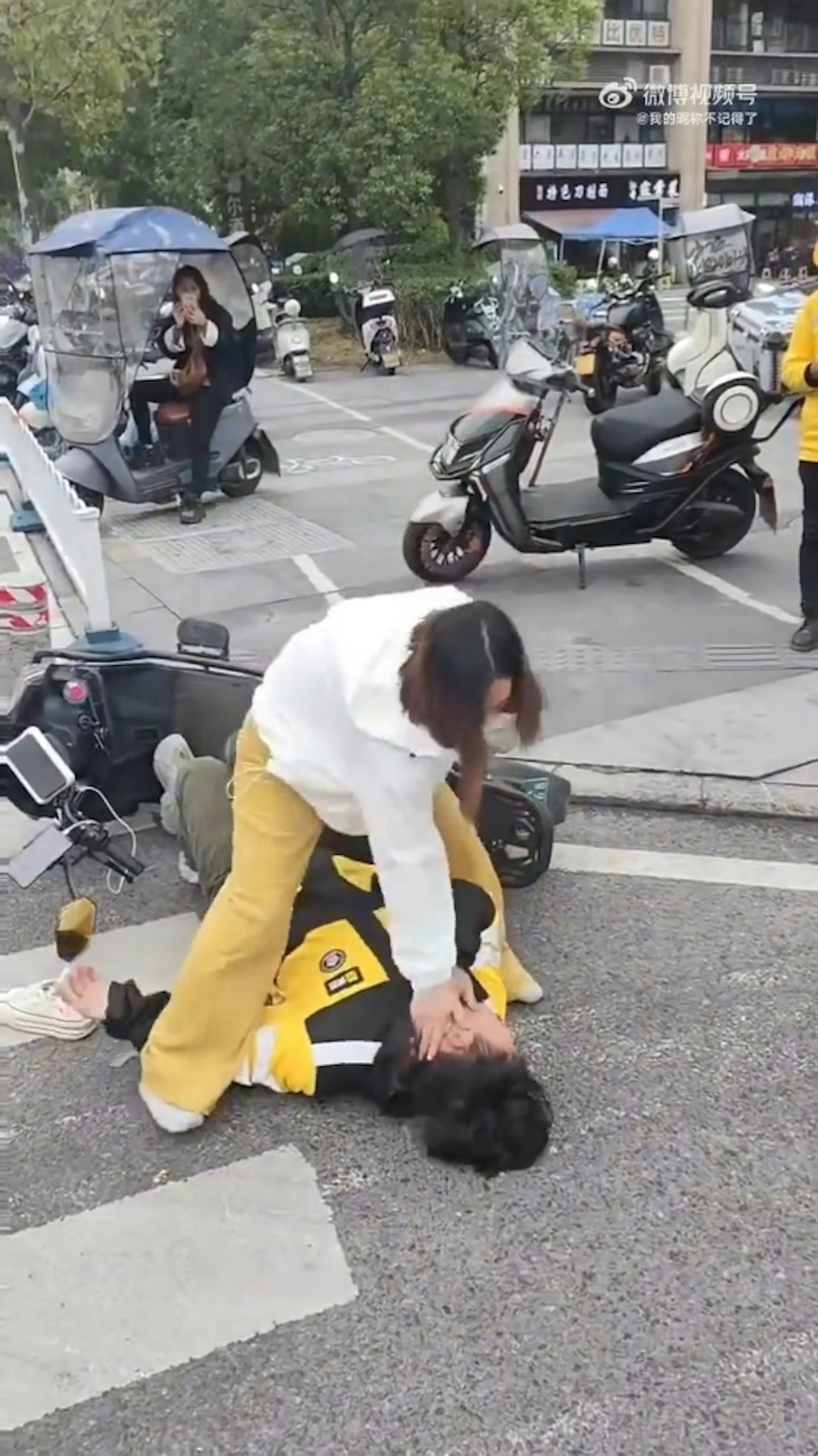 ( b/ _ A R7 }2 ^; F5 A9 M& h; ctvb now,tvbnow,bttvb影片顯示,外賣員坐在馬路邊的石柱上,突然被一名女子用手拉扯,兩人一同倒地,後來該名女子用腳踩住外賣員,期間又掌摑對方。其他路過的外賣員上前了解時,該女子稱「他撞倒我」,原本倒地的外賣員試圖起身,但她立即手腳並用讓對方繼續躺地。