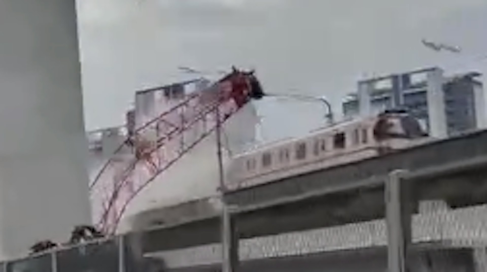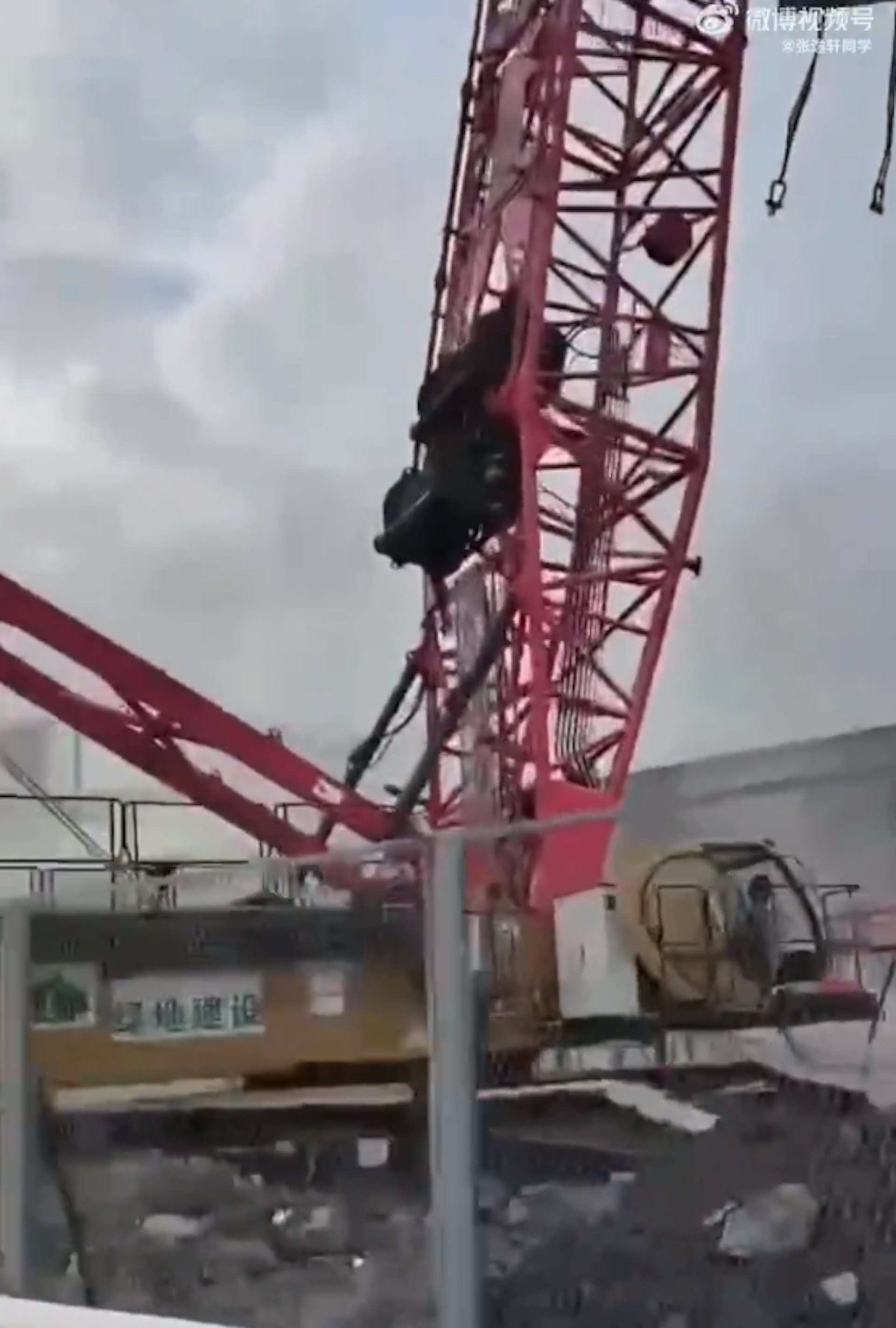 據網傳影片顯示,上海一列車與施工的塔式起重機相撞,起重機被撞到落到軌道下方。另有網傳影片顯示,列車車窗玻璃被撞破,碎片散落遍地。網傳圖片顯示,列車車頭受損。; C m$ b) a) |: J; S5 e