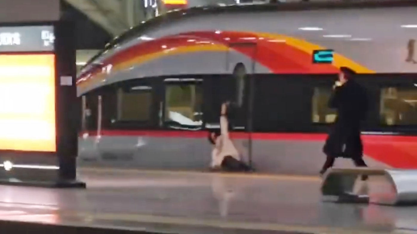 6 U0 X6 H. D* s9 r& C: d: T! {: D. M在廣州南站的月台上,一輛高鐵剛啟動,有人被車門夾住被拖行。(影片截圖)5.39.217.76( z- h: Q6 l& `$ g, ]