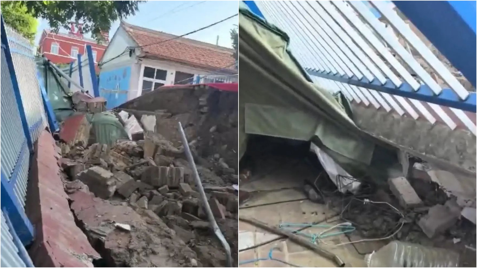 學校圍牆倒塌。(極目新聞). h# T* U: }* y/ f0 Y* o