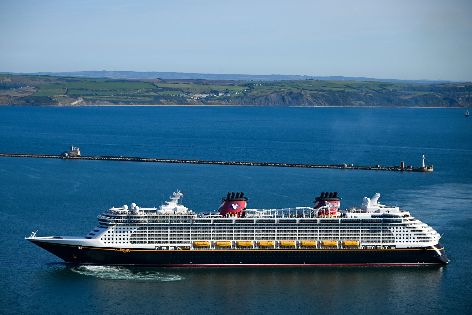 . J; C9 K" s% j) N0 S5.39.217.76圖為2024年9月13日,迪士尼郵輪「迪士尼夢想」號抵達英格蘭多塞特郡(Dorset)港口。(Getty Images)