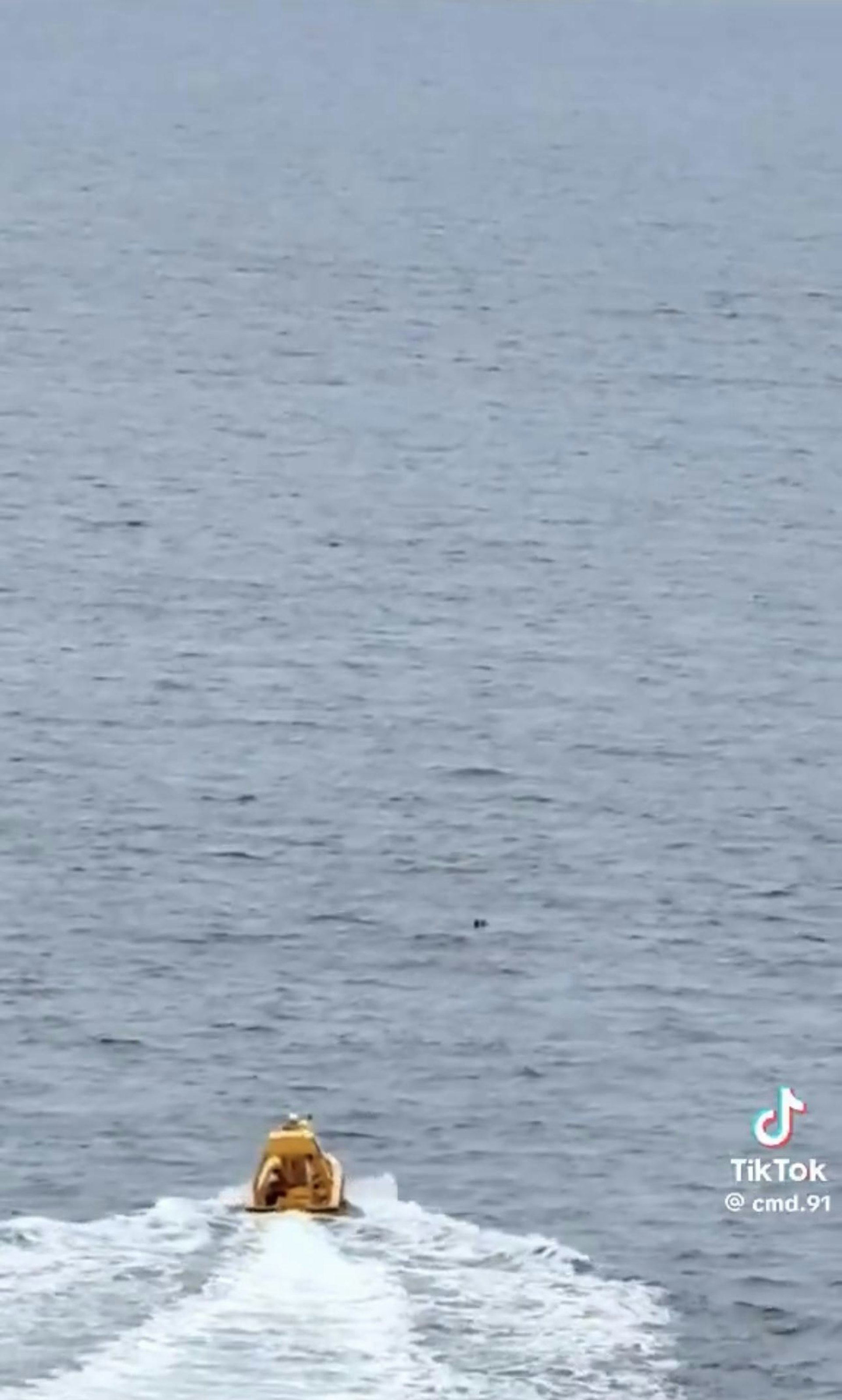 兩人獲救後,救生艇駛回郵輪,現場陌響起一片歡呼聲。(x.@Jimni38 截圖)5.39.217.76: P9 V* m: i; O2 i' ?# W