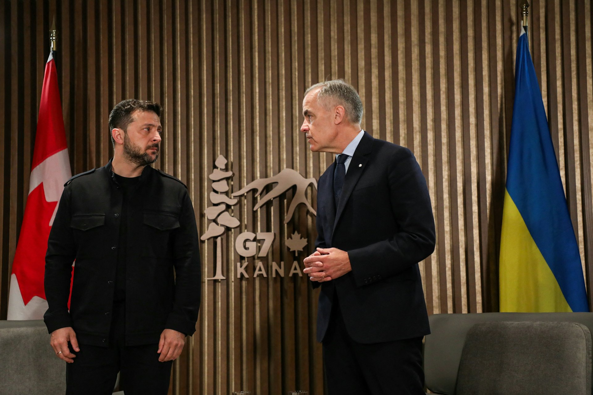 4 c  f4 i3 N' Q  u5 [9 n公仔箱論壇2025年6月17日,加拿大阿爾伯塔省,圖為加拿大總理卡尼在七國峰會上會晤澤連斯基。(Reuters)- c" v* f% I1 S2 I" y* N6 H