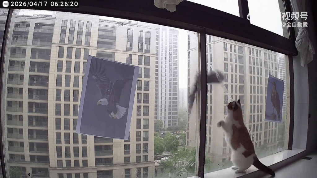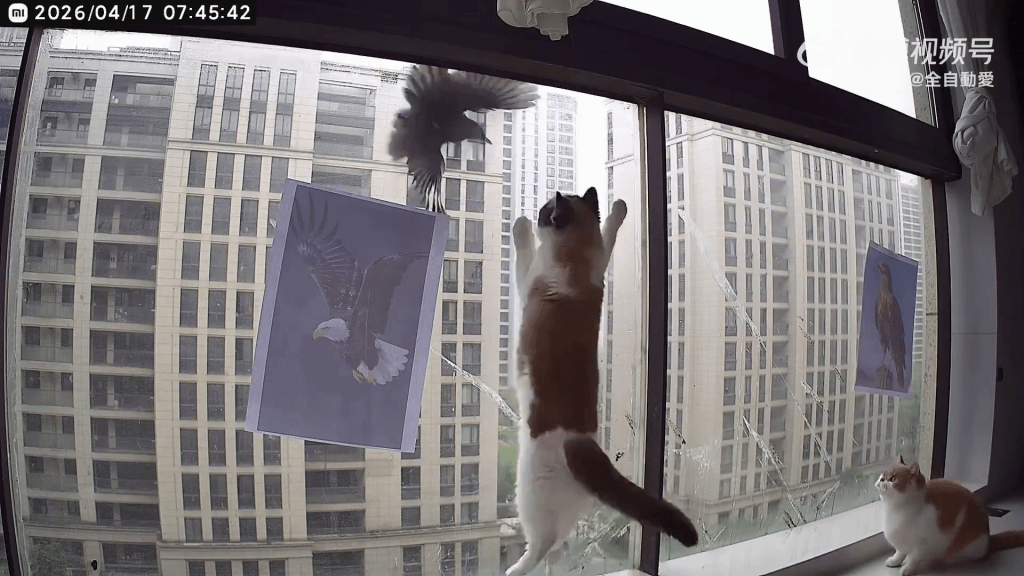 因每次烏鶇來襲,貓咪都會在窗邊跟隨其軌跡跳動撲打。