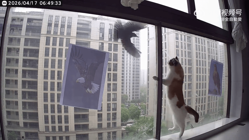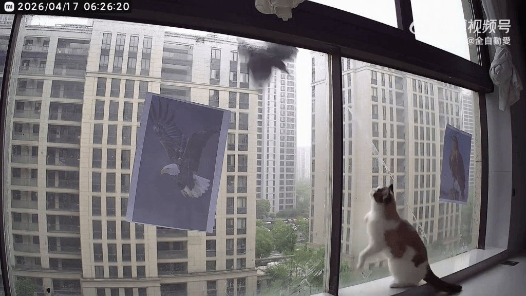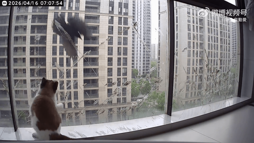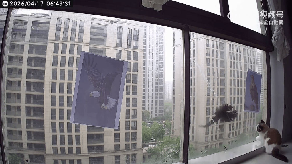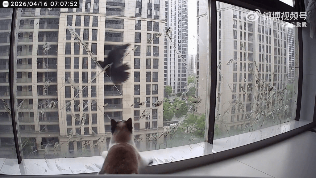 據《羊城晚報》,浙江杭州的吳女士近日在網上發布閉路電視畫面,顯示一隻黑色烏鶇每日準時在清晨時分,飛到其住所的陽台窗外,以極快速度掠過,並在玻璃上留下一道長長的鳥糞痕跡,猶如「畫地圖」。吳女懷疑,事件可能與家中飼養的貓隻有關,因每次烏鶇來襲,貓咪都會在窗邊跟隨其軌跡跳動撲打,或因此被視為挑釁。