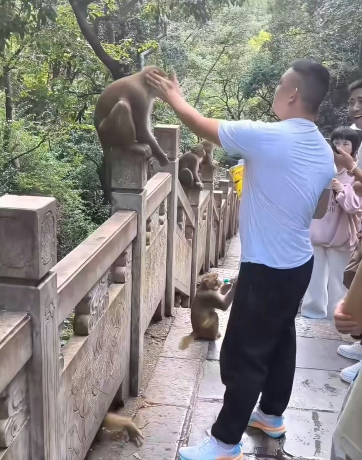 10月17日,貴州貴陽市黔靈山公園,一名男子扇猴子臉後遭猴子飛踹。10月18日,公園工作人員稱,不能逗野生獼猴,最好保持3米以上距離,被搶東西就把東西扔掉,抓傷咬傷後果自負。