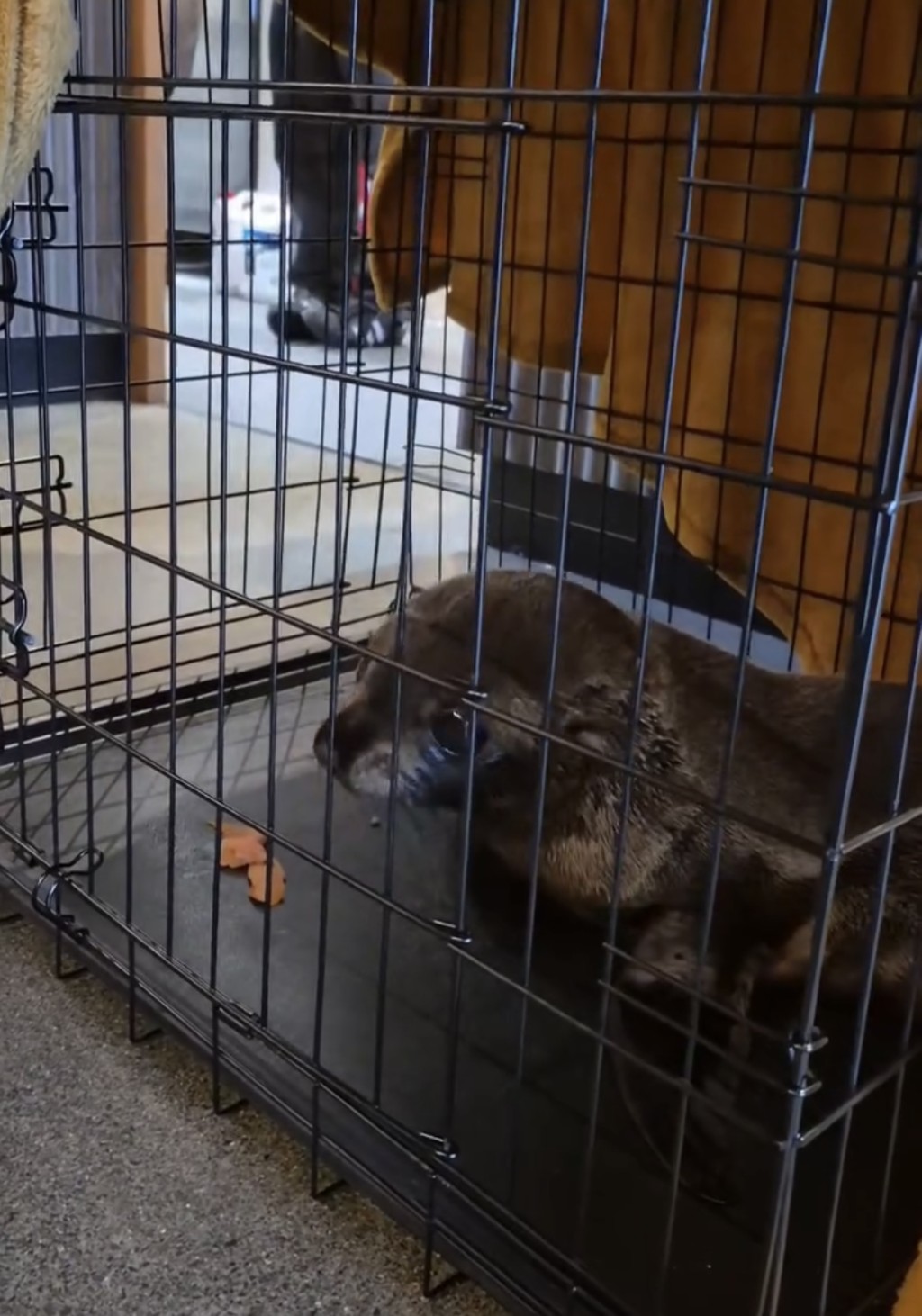 最後敗給三文魚,被引入顧客帶來的狗籠內。 fb / Sprig + Fern The Meadows