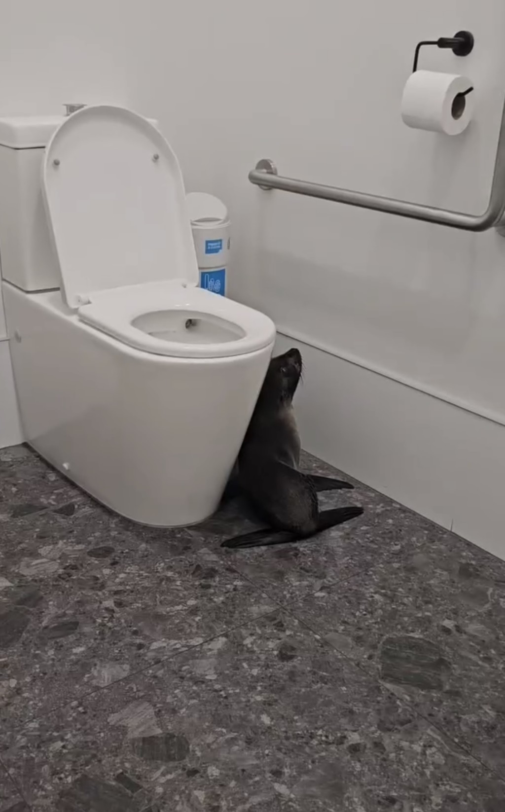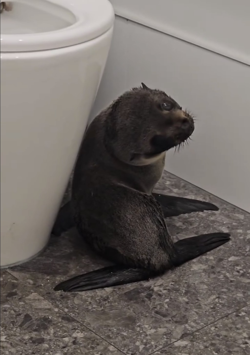 小海豹躲進廁所。 fb / Sprig + Fern The Meadows