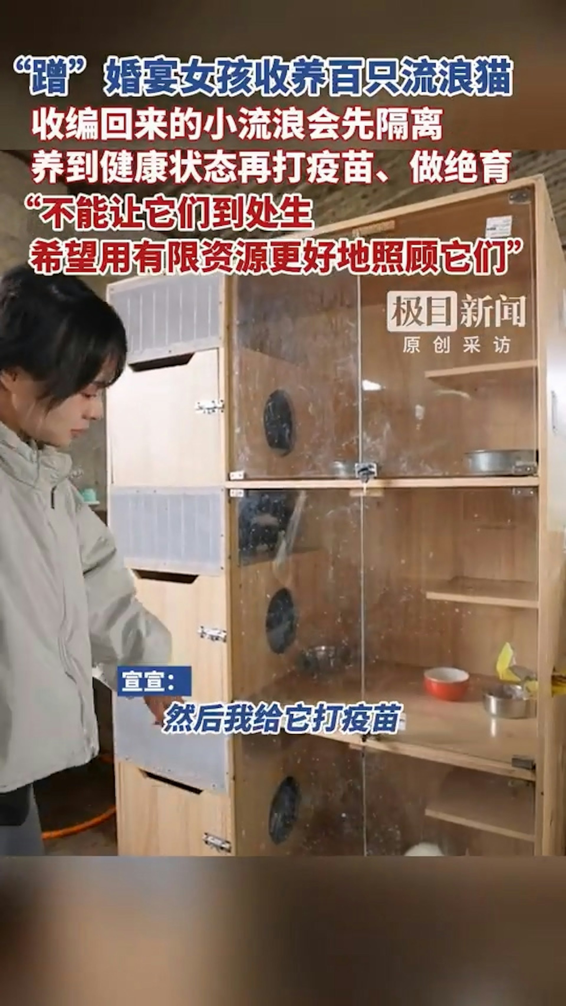 雲南保山一名長相清秀的「社恐」女孩,為了流浪貓逐漸接觸人群,她已收養一百多隻貓,穿梭在各個婚宴,討剩飯剩菜並備小紅包避免閒言閒語。(微博@極目新聞)