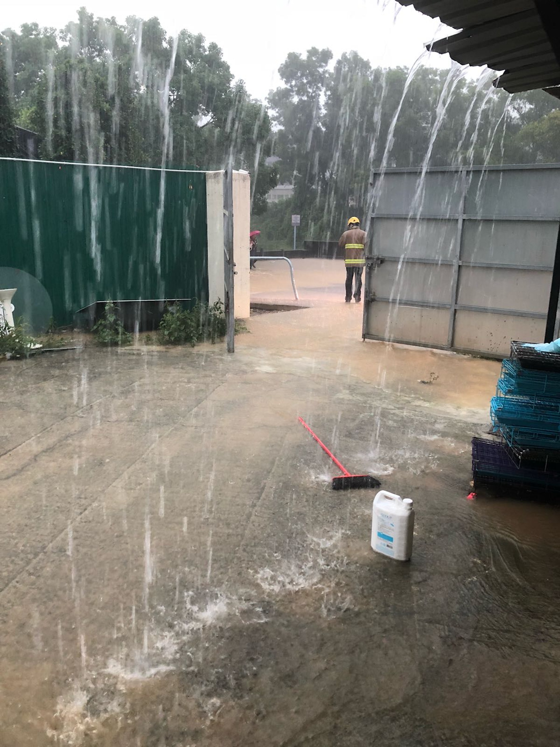 阿棍屋負責人Ivy接受《香港01》訪問時表示昨日(29日)下午時份元朗突然下起大雨,「初時並無想像過雨水竟然可以浸沒成個中心,最後我衡量過中心差唔多有60幾隻狗狗同貓貓,水浸又咁犀利,我真係要報警要求消防(處)嚟幫手。」消防處接報後立即到達現場進行救援工作,Ivy亦有與消防員們合作,負責抱起體型較少的貓狗。