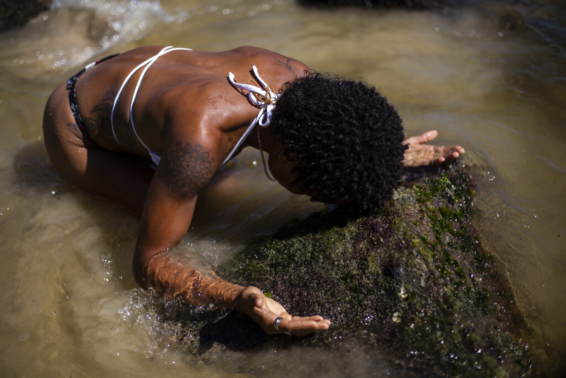 # g* H* R1 t8 D1 e, }2 z# ]公仔箱論壇巴西新冠肺炎疫情:圖為2020年12月31日,一名女子來到里約熱內盧紅海灘參加祟拜海洋女神Yemanja的儀式。她在過去一年因疫情丟了飯碗,於是前來求神。(AP) |