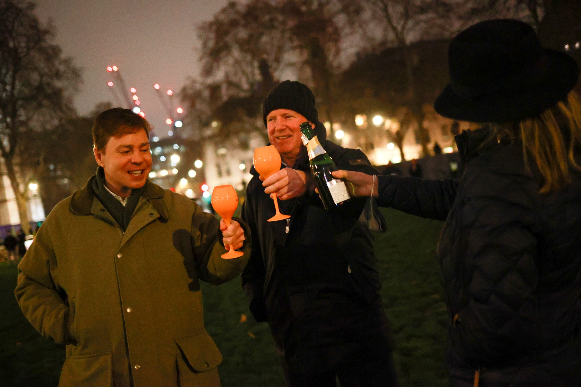 : O: r$ _" T+ v公仔箱論壇英國的疫情雖然嚴峻,但在2020年的除夕夜仍有民眾於倫敦聚集,慶祝新年及英國正式脫歐。(Reuters)