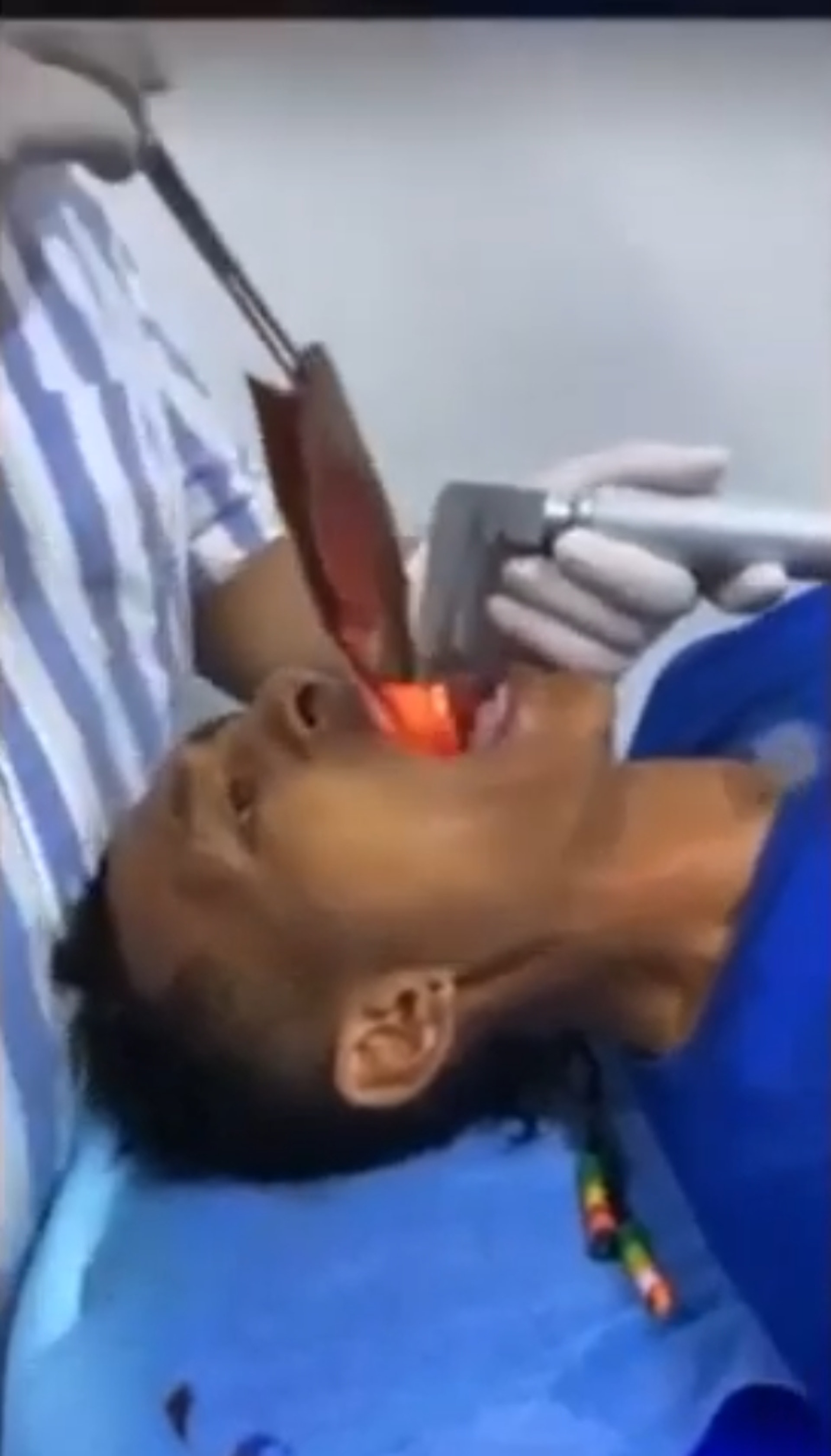 哥倫比亞醫生從一名男子喉嚨中拉出一條約18厘米的大魚。(影片截圖:YouTube@Yinksuk blog)& S7 S- b* |9 s; }6 T