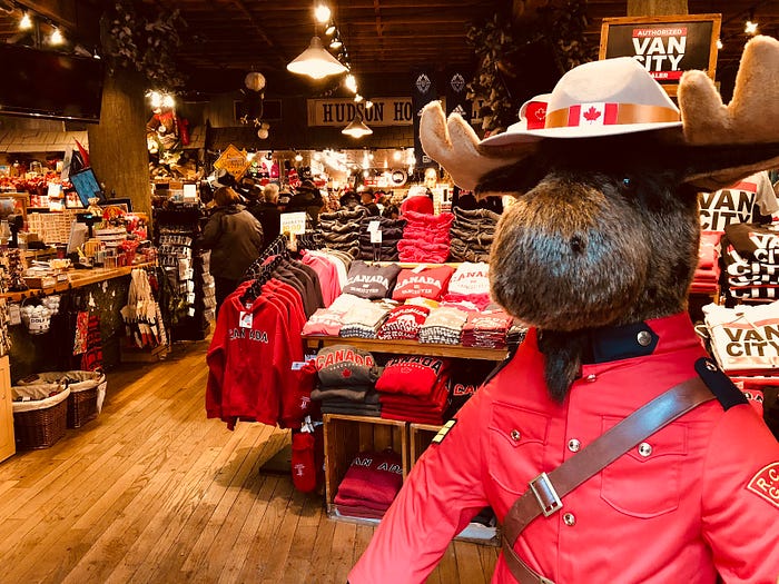 在蒸汽鐘旁的這間 Hudson House 紀念品店更有著悠久的歷史,於1895年由Hudson’s Bay Company 所建造,前身是作為皮草和酒類商品的倉庫使用,現在則販售著琳瑯滿目的紀念品們。