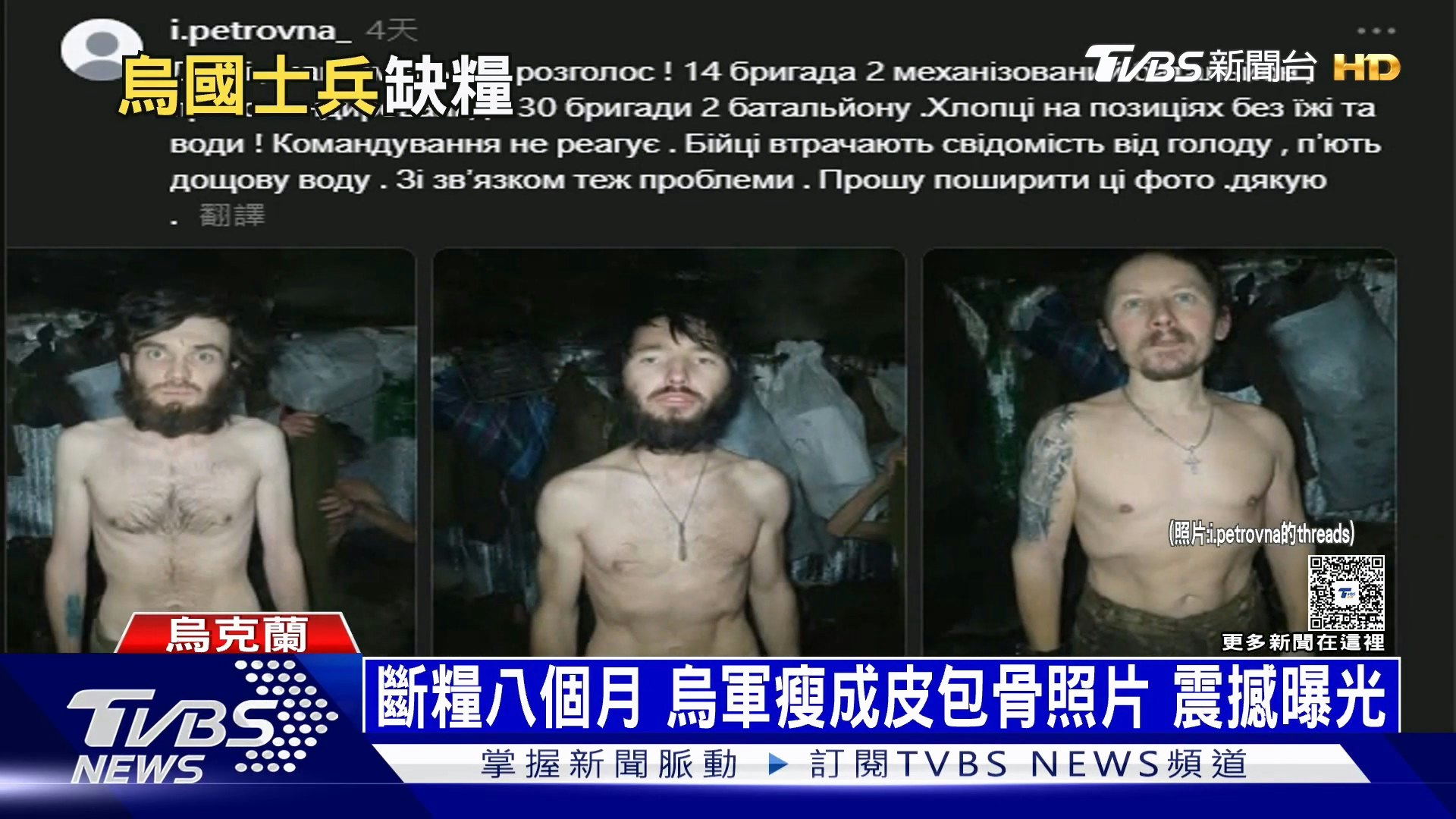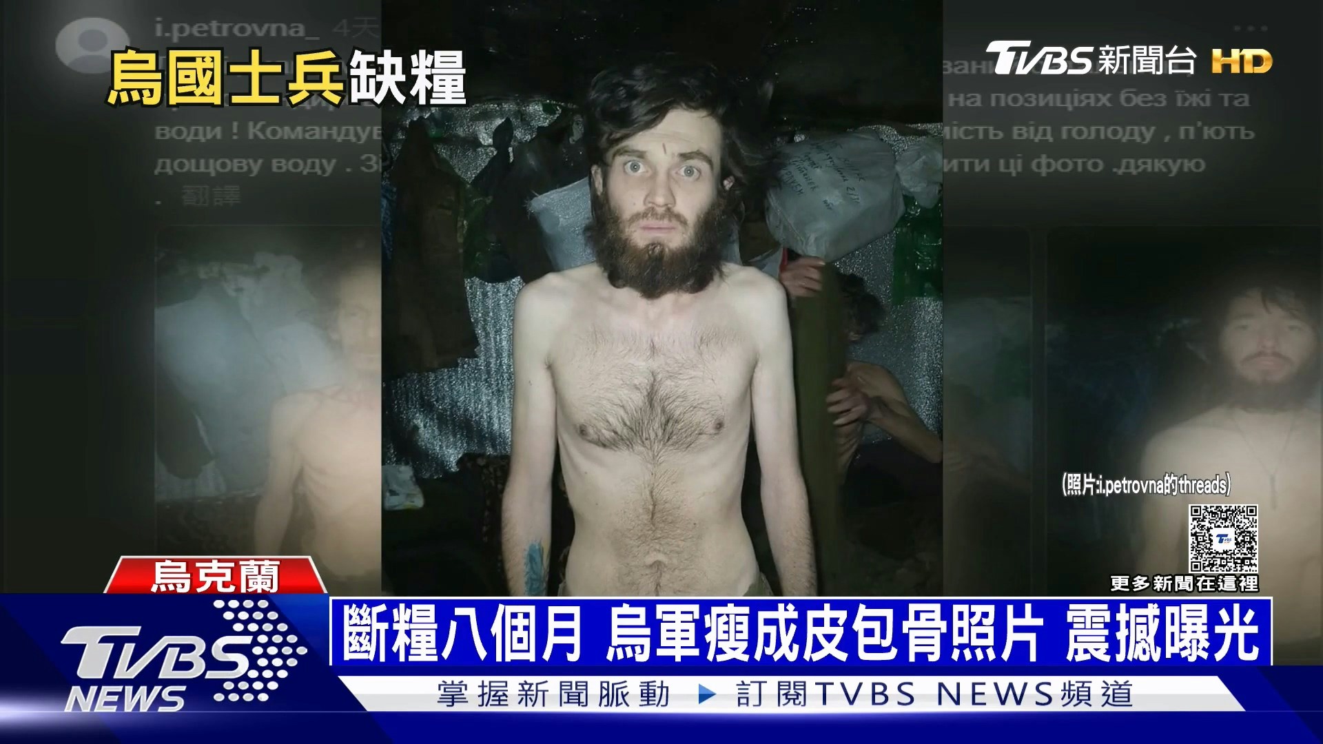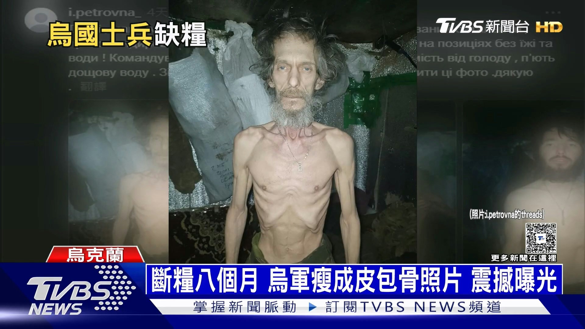 這起事件最早由軍眷阿納斯塔西婭(Anastasiia Silchuk)揭露,她在Threads上公開烏克蘭士兵們瘦到剩皮包骨的照片,照片中士兵臉色蒼白、四肢消瘦,與過去體格形成強烈對比。(YouTube@TVBSNEWS01)