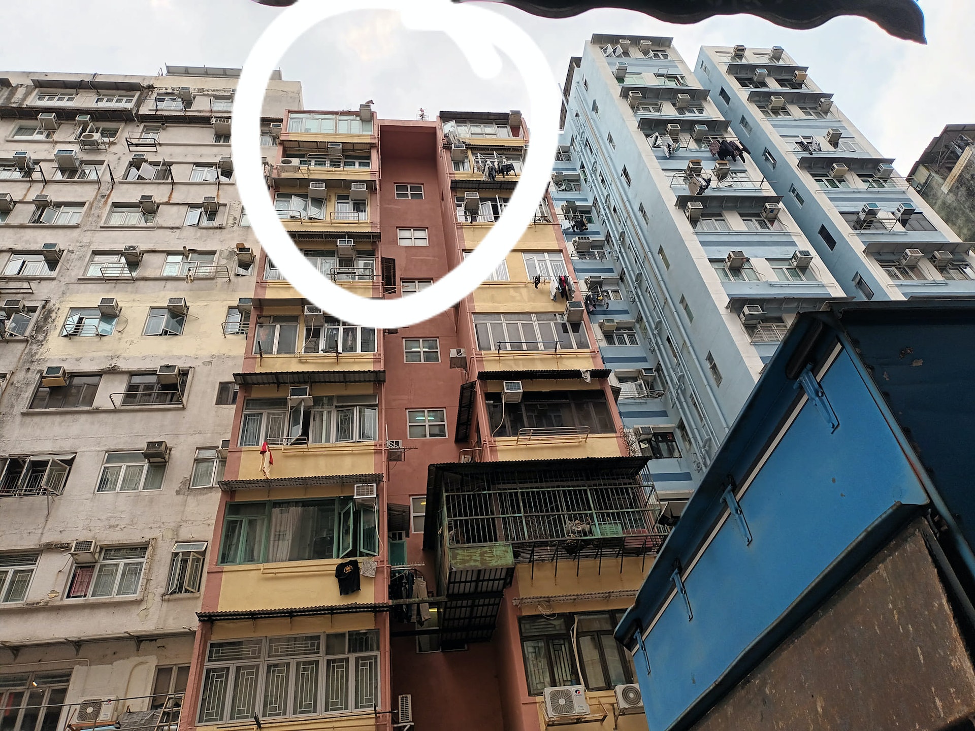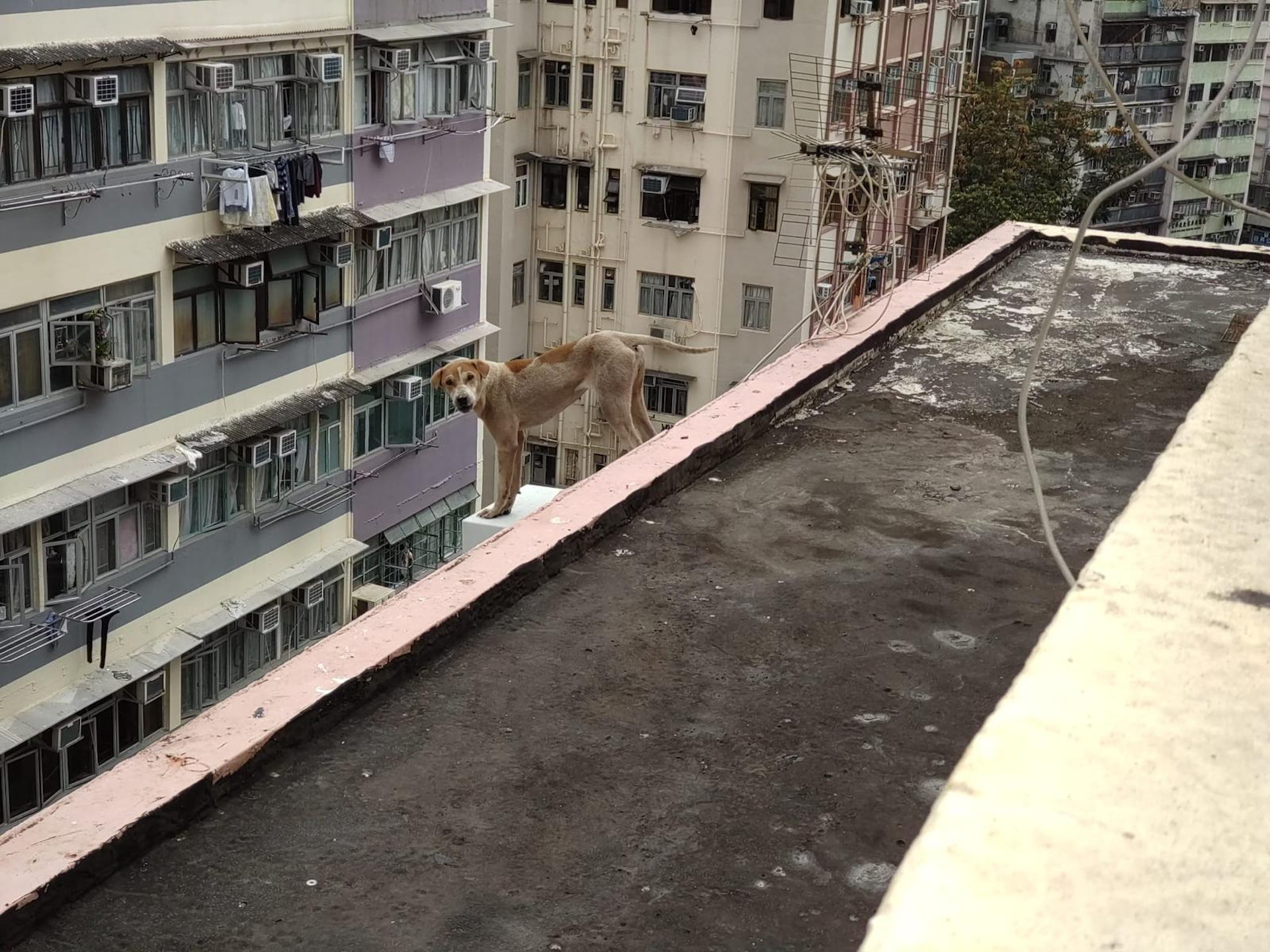 狗隻被困天台邊緣。(Hok Yuen Daney Cheng上傳至深水埗街坊會FB)